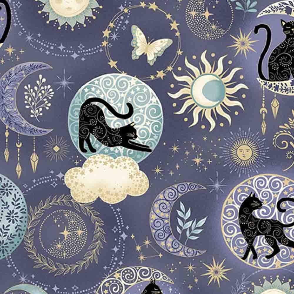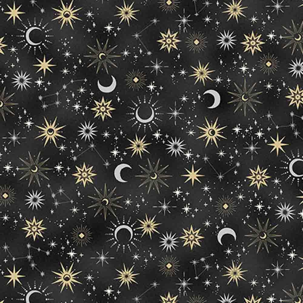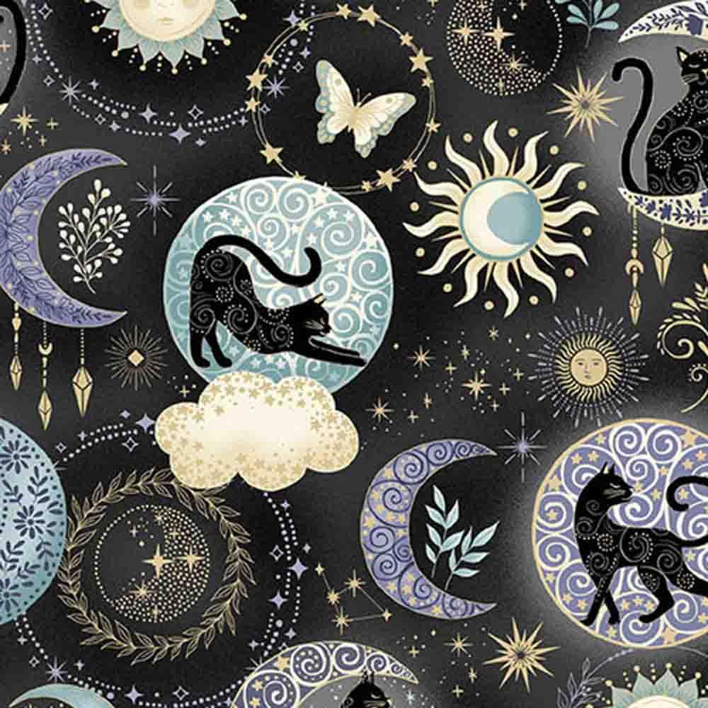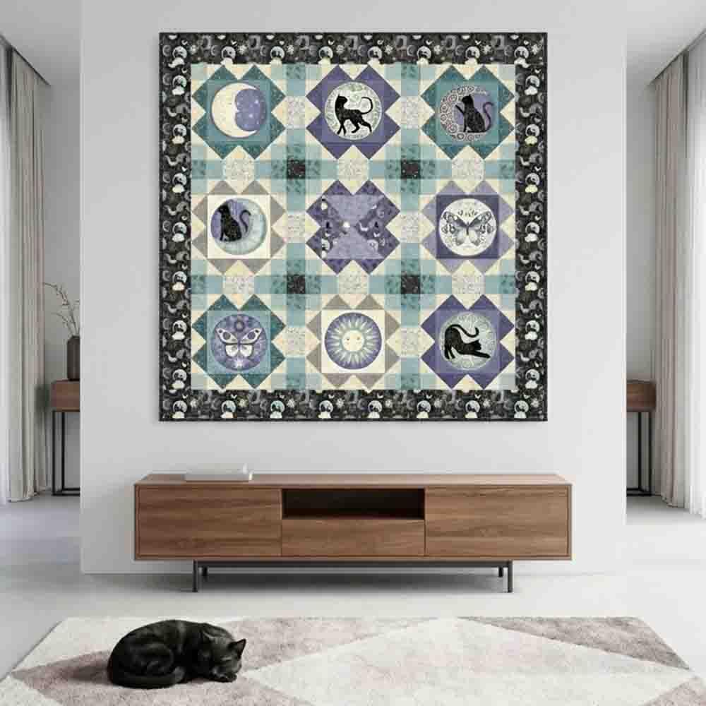 The Bewitchery Quilt Kit includes pattern by Andover Design Team and all fabrics needed for the front and binding of a 60" x 60" quilt. Backing is available separately, 4 yards x 44" wide recommended.