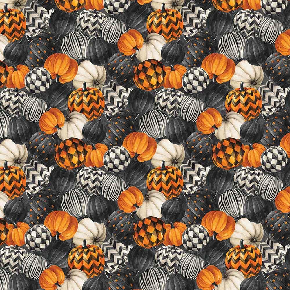 Northcott Fabrics - Night Owl by Deborah Edwards - Digital - Pumpkin Toss - Black - Yardage