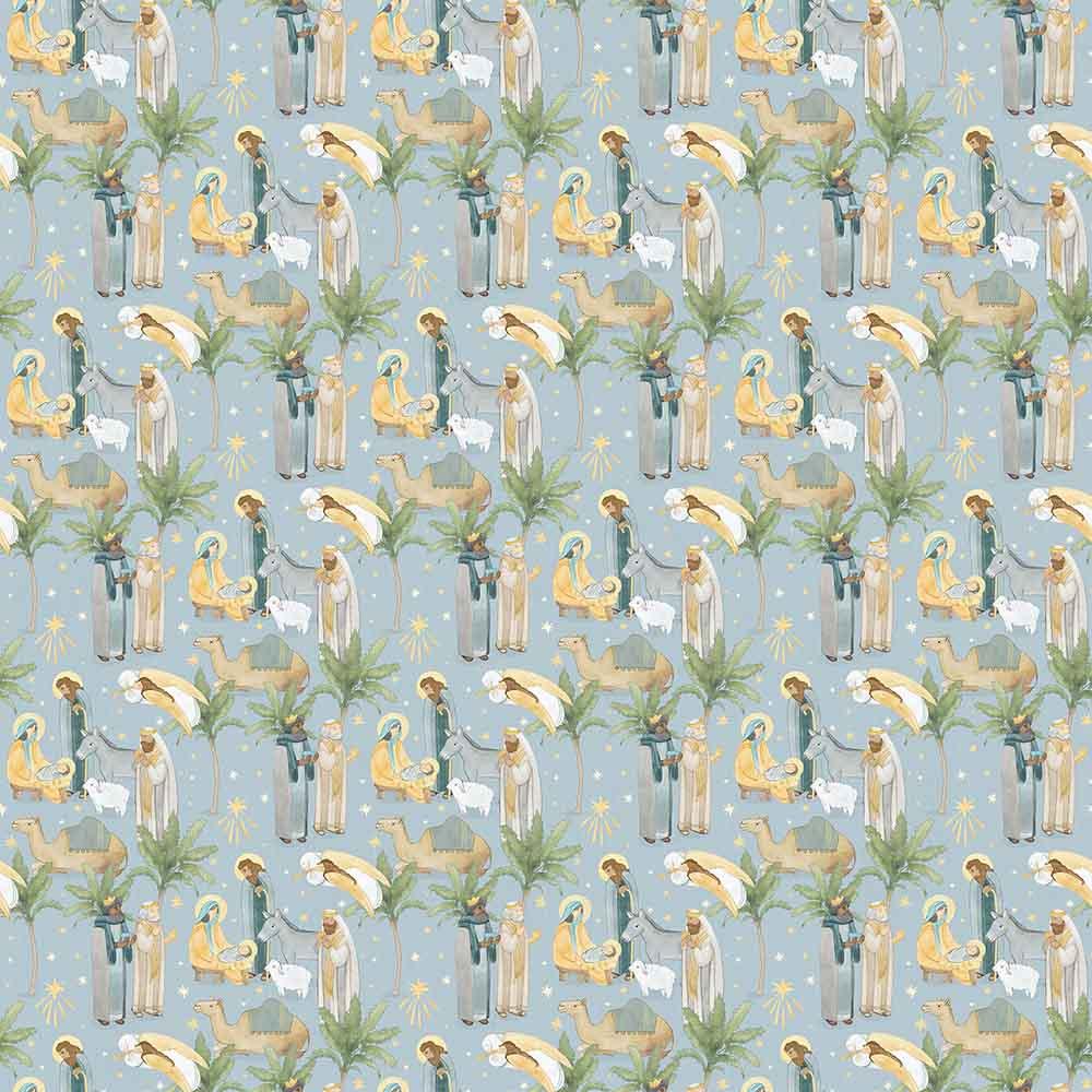 Northcott Fabrics - The Nativity by Northcott Studio - Digital - Welcome To The World - Light Blue - Yardage