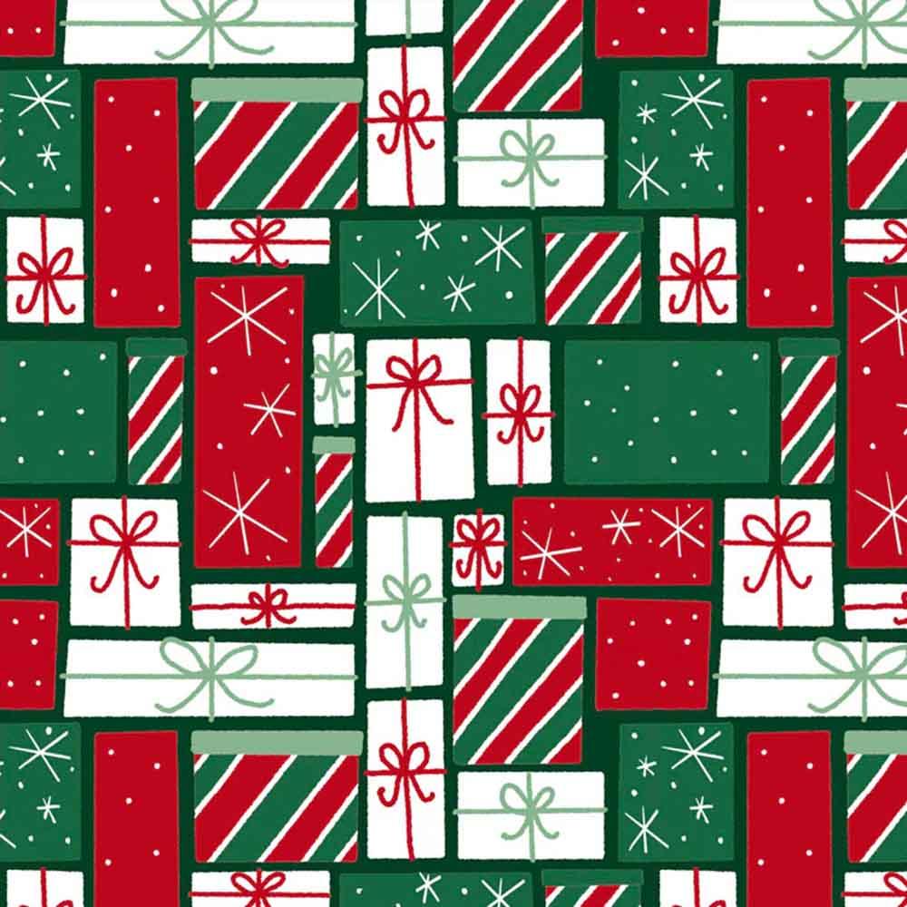 P&B Textiles - Nutcracker Whimsy by Rachel Hallquist - Packed Presents - Green/Red - Yardage