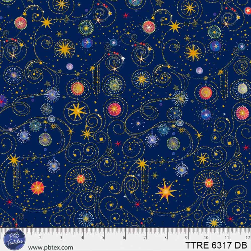 P&B Textiles - Turnowsky Treasures by Turnowsky - Christmas Sparkles - Dark Blue - Yardage