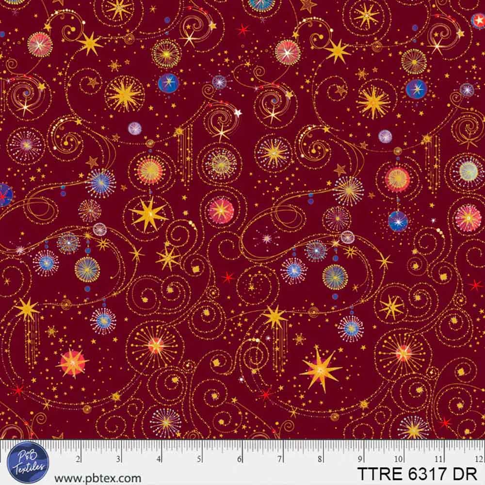 P&B Textiles - Turnowsky Treasures by Turnowsky - Christmas Sparkles - Dark Red - Yardage