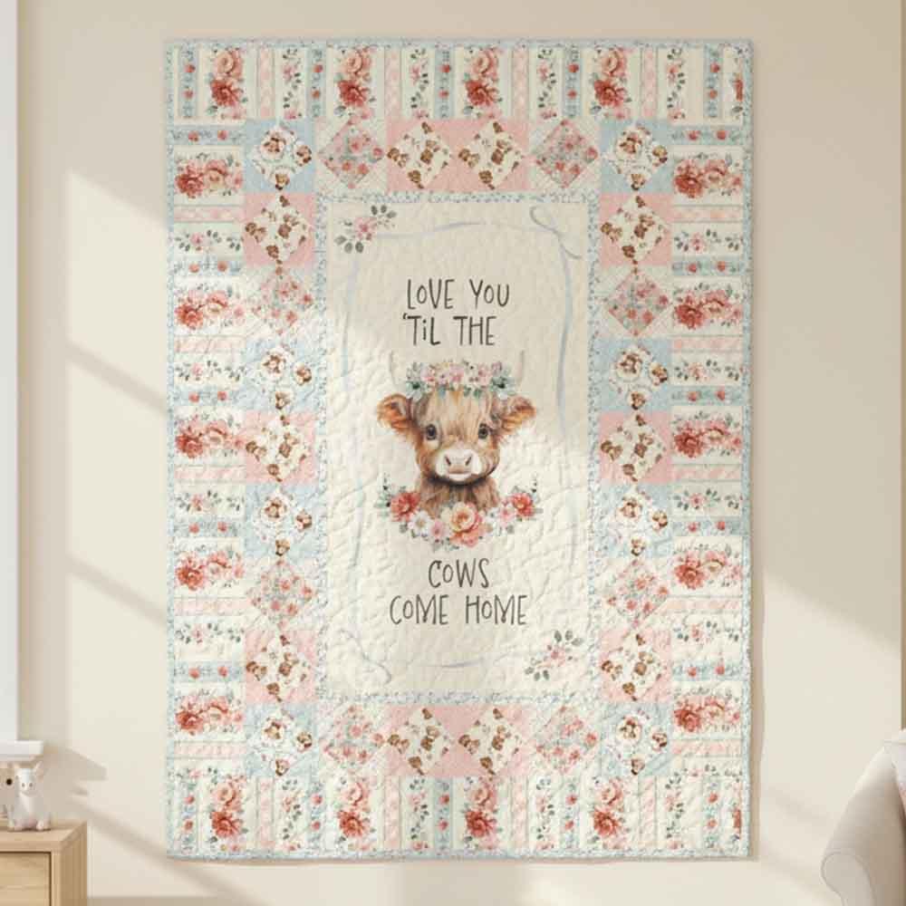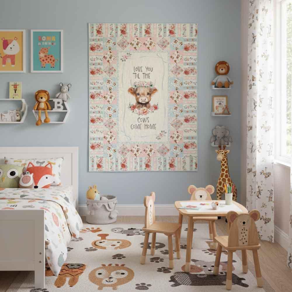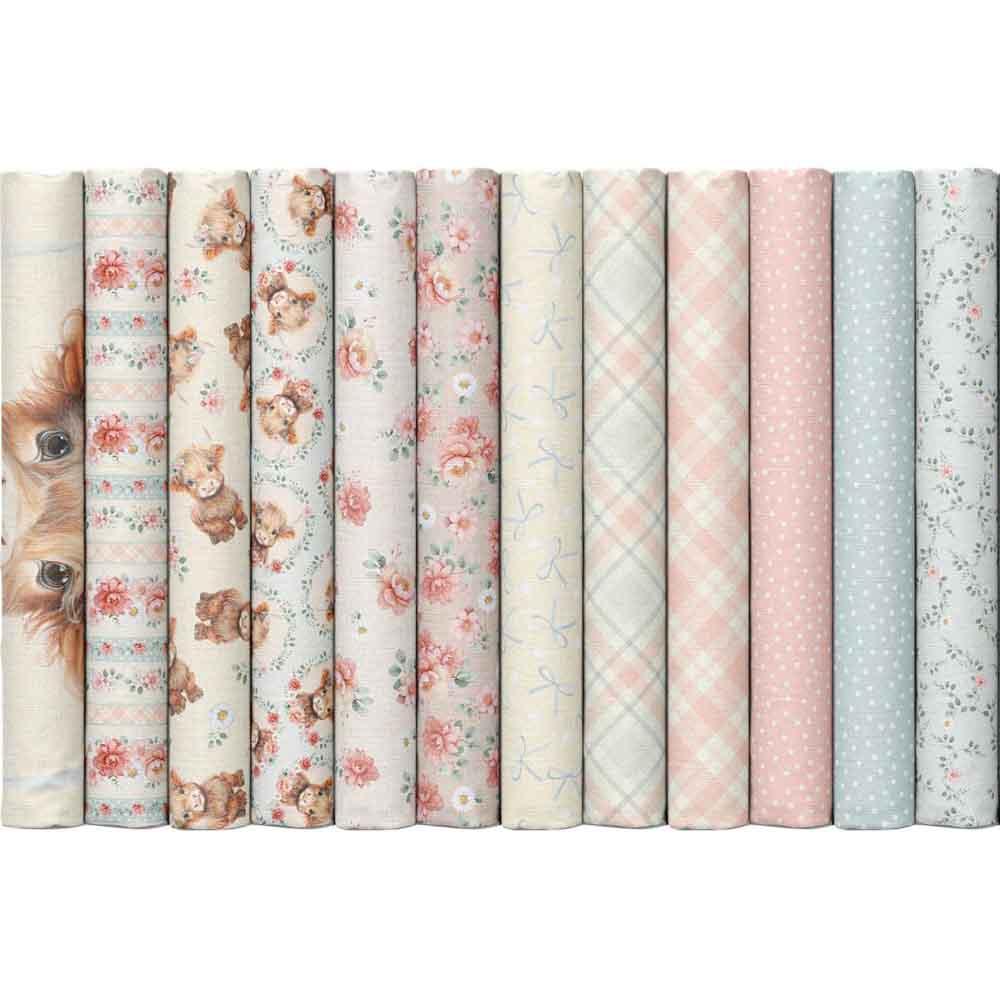 The sweetest message for someone you hold dear, a message that you will love them endlessly. The Friendship Cows Kit includes advanced beginner pattern by Castilleja Cotton and all the fabrics needed, including panel, for the top and binding from the Til The Cows Come Home collection by Timeless Treasures. Finished size is 48" x 66". Backing available separately, 4-1/2 yards x 44" wide recommended.