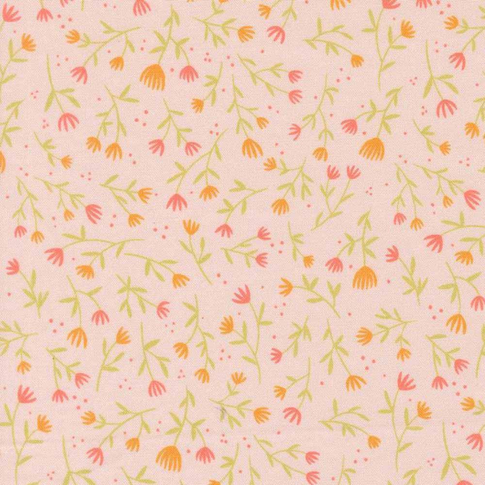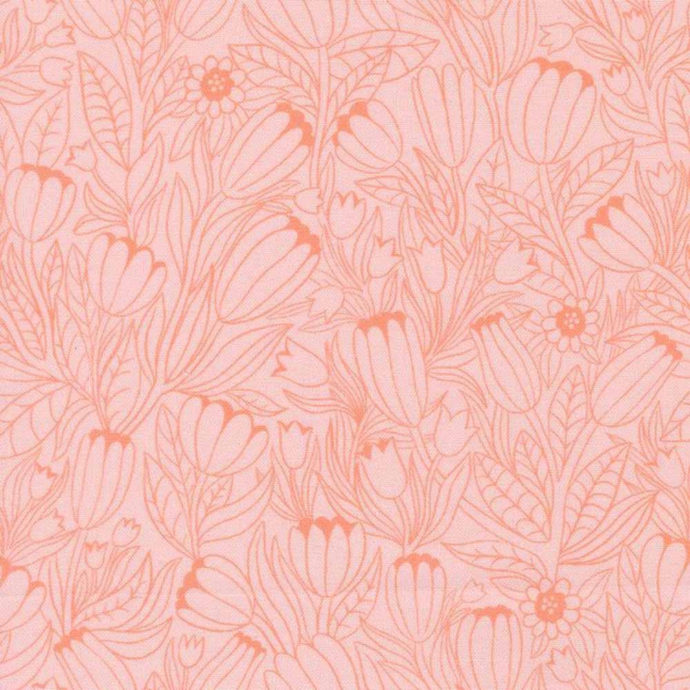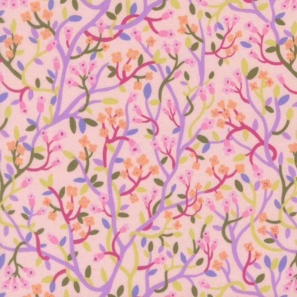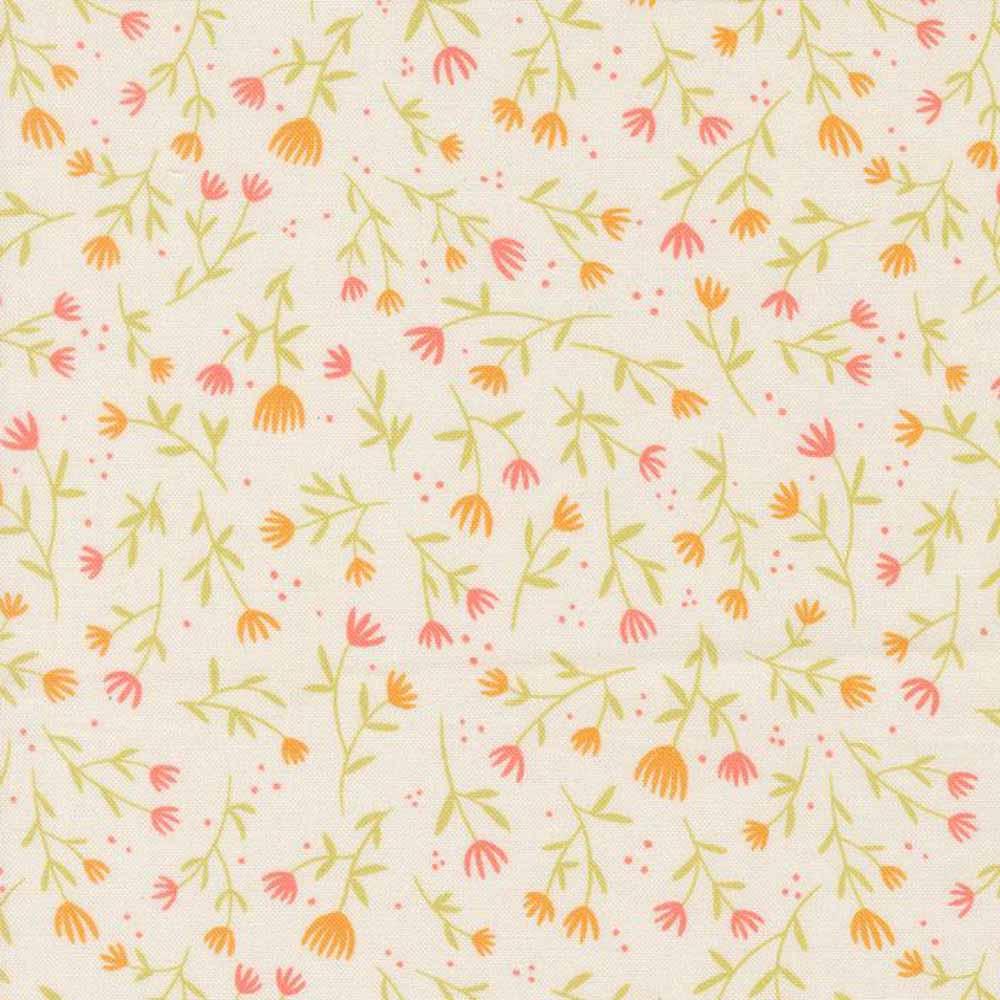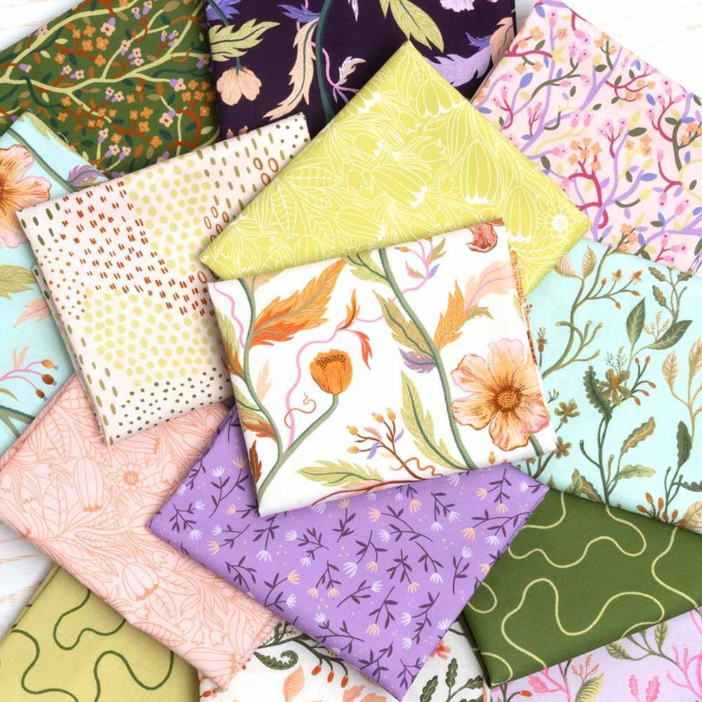 Floral Fondant by designer Linn Warme for Moda Fabrics celebrates the gentle arrival of spring with an exquisite palette and hand-drawn floral motifs. The collection is described as: “The quiet shift from winter to spring brings a gentle transformation — gray skies give way to color as tender buds and blossoms begin to appear. Soon, the muted landscape turns vibrant, alive with blooms that feel like nature’s own celebration cake.”