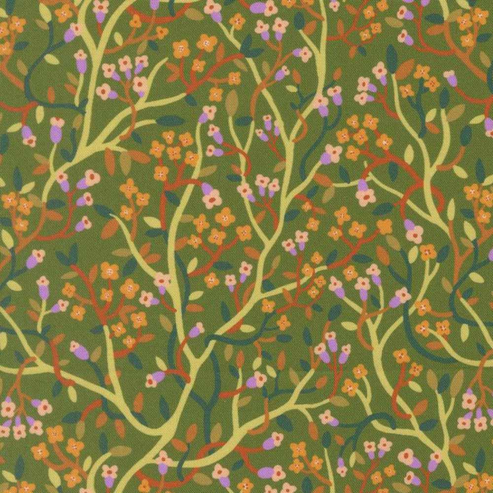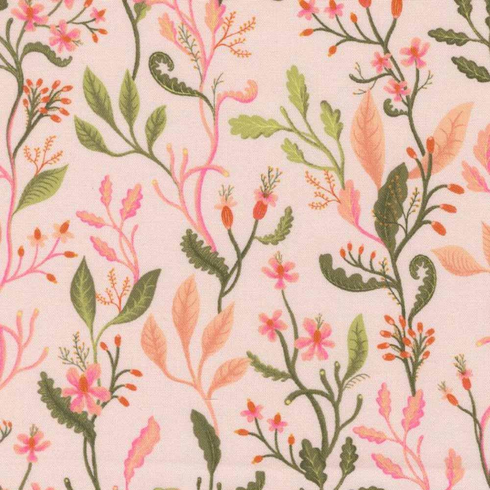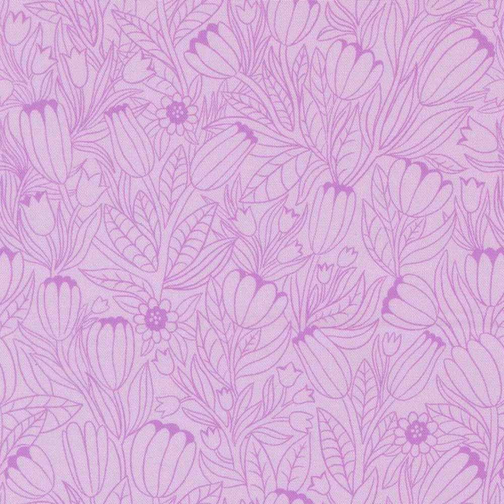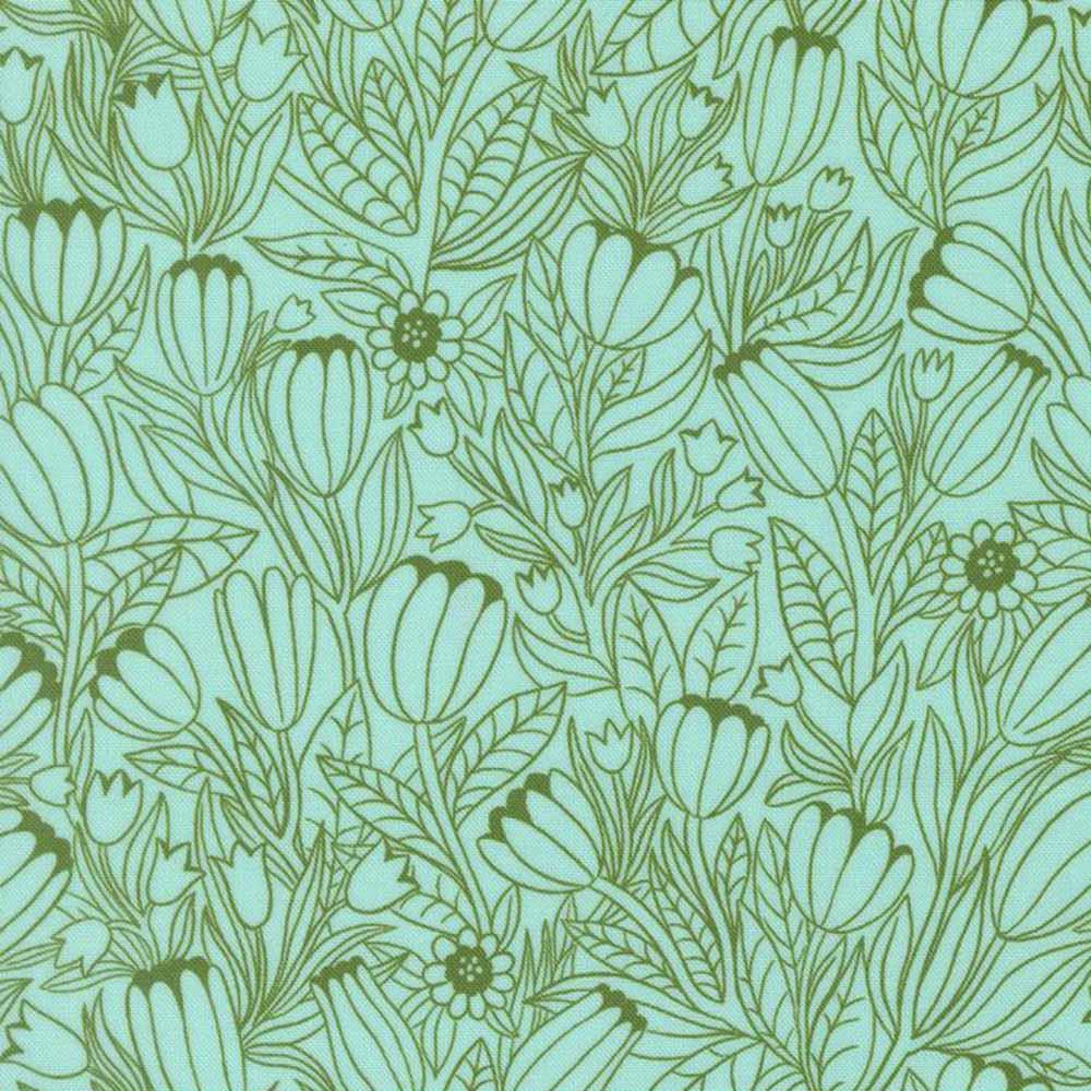 Floral Fondant by designer Linn Warme for Moda Fabrics celebrates the gentle arrival of spring with an exquisite palette and hand-drawn floral motifs. The collection is described as: “The quiet shift from winter to spring brings a gentle transformation — gray skies give way to color as tender buds and blossoms begin to appear. Soon, the muted landscape turns vibrant, alive with blooms that feel like nature’s own celebration cake.”