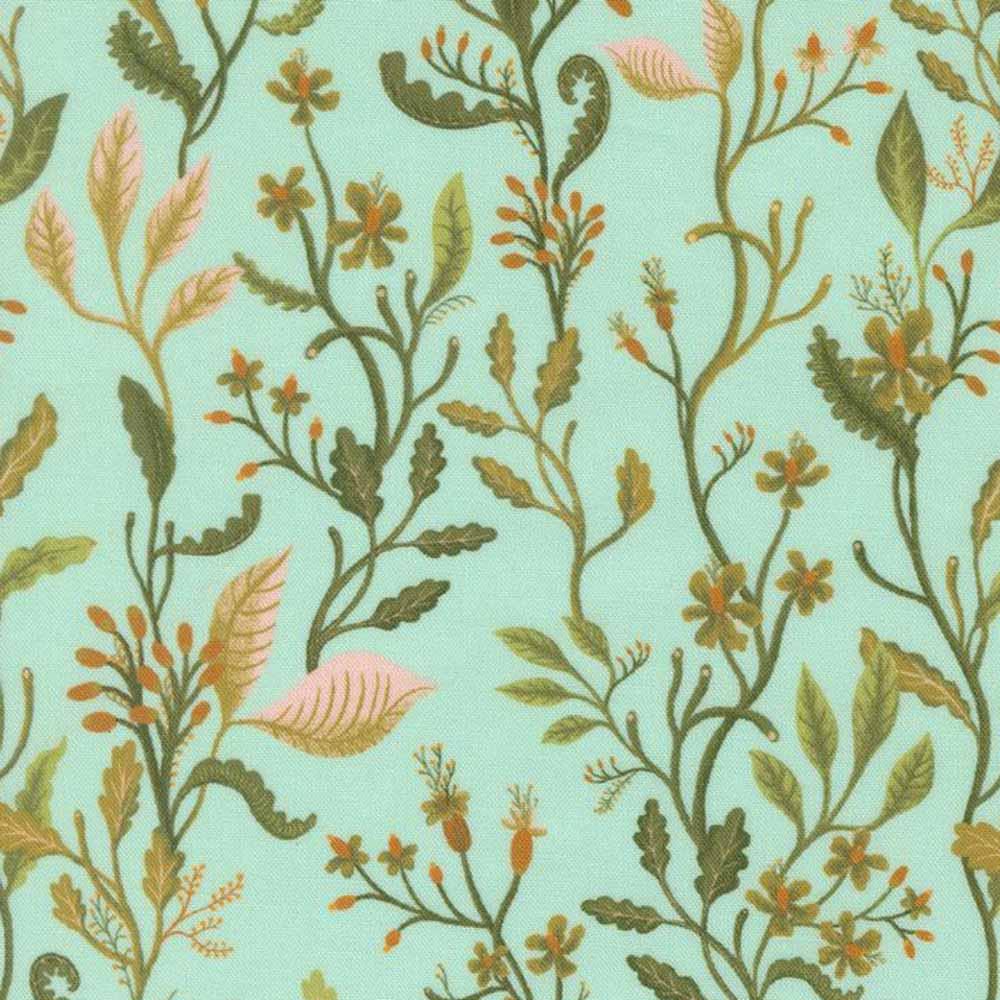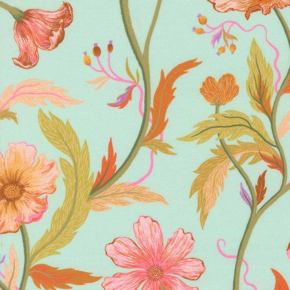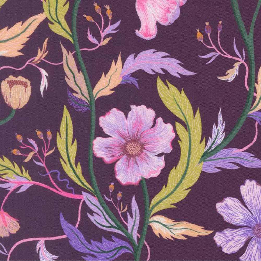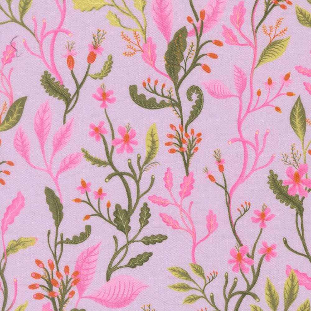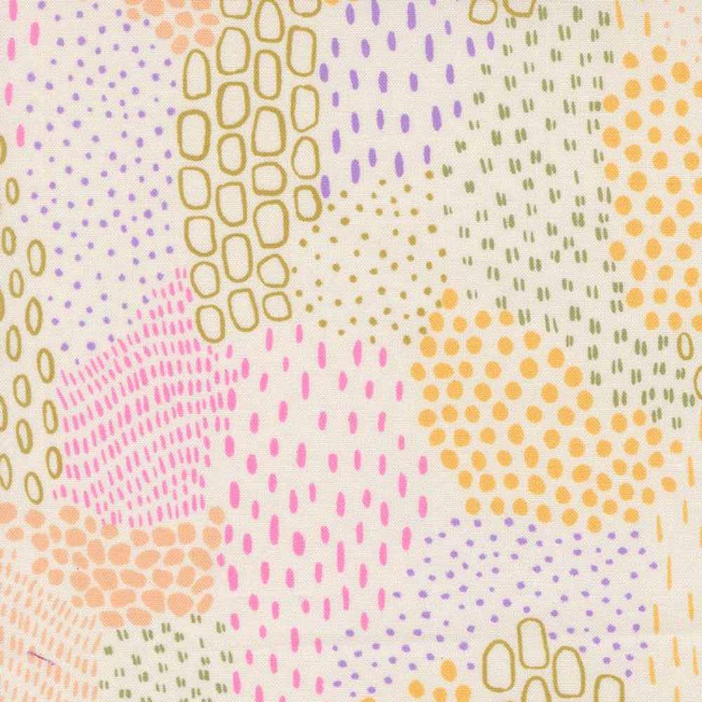 Floral Fondant by designer Linn Warme for Moda Fabrics celebrates the gentle arrival of spring with an exquisite palette and hand-drawn floral motifs. The collection is described as: “The quiet shift from winter to spring brings a gentle transformation — gray skies give way to color as tender buds and blossoms begin to appear. Soon, the muted landscape turns vibrant, alive with blooms that feel like nature’s own celebration cake.”