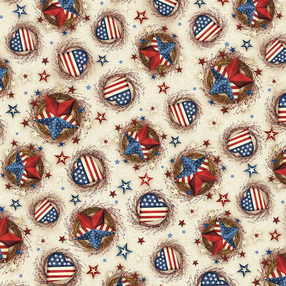 We're excited to present Love & Glory, Gina Jane Lee's very first fabric collection for P&B Textiles! Immerse yourself in the country charm and rustic nostalgia infused in every print. Prints includes hearts, stars, plaids and stripes. The Love & Glory Star Kit includes pattern by Cyndi Hershey and all the fabrics needed for the top and binding for a 74" x 88" quilt. Backing available separately, 5-1/2 yards x 44" wide recommended.