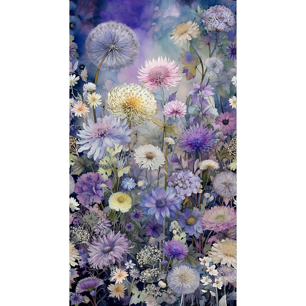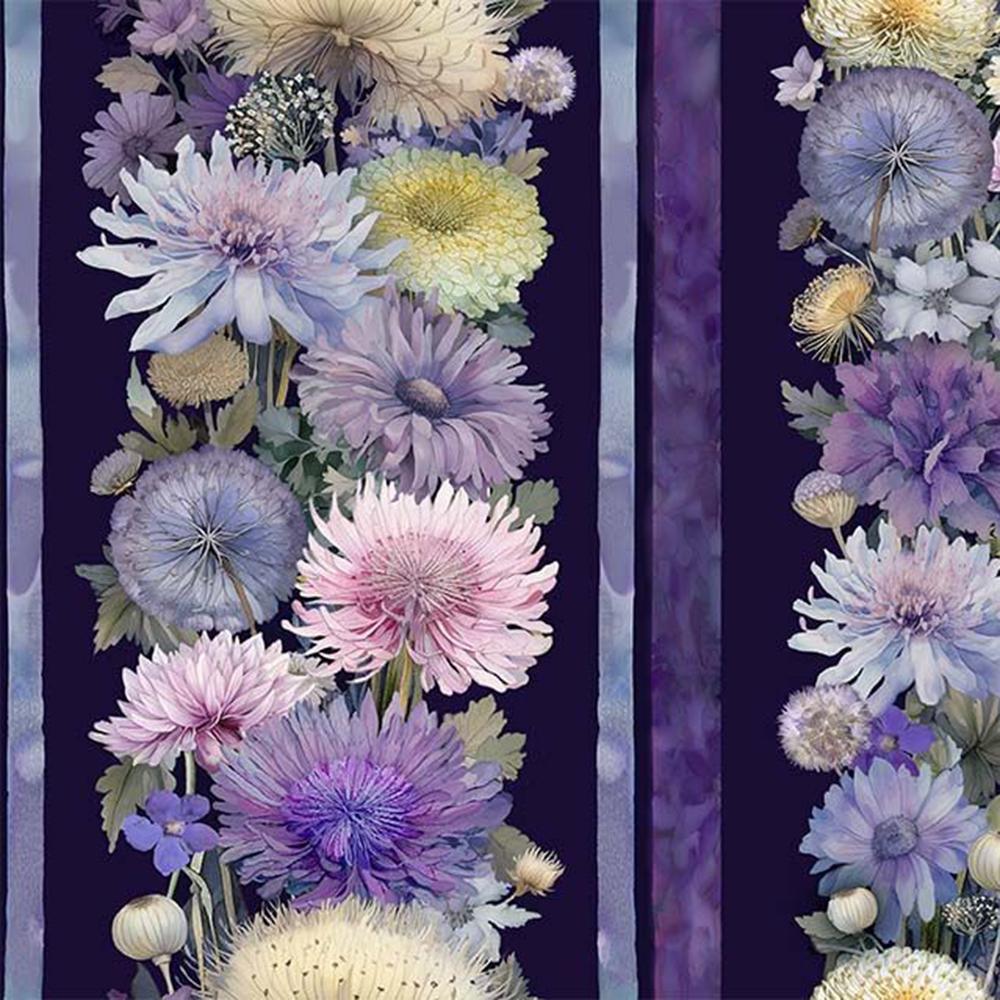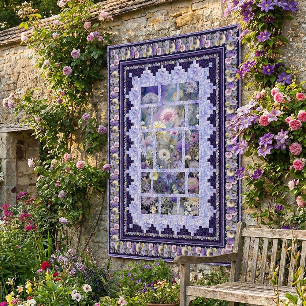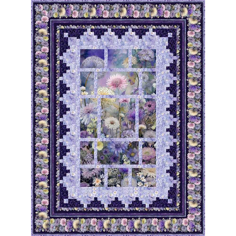 A cut up panel with strips of fabric in between help create this beautiful view of a dreamy flower garden in a color palette of violet, blush and cream with hints of soft yellow and teal. The Mountain View Kit includes pattern from PineRose Designs and all the fabrics needed, including panel, for the top and binding from the Mystic Meadow digital collection by Timeless Treasures. Finished size is 50" x 68". Backing available separately, 4-1/2 yards x 44" wide recommended.