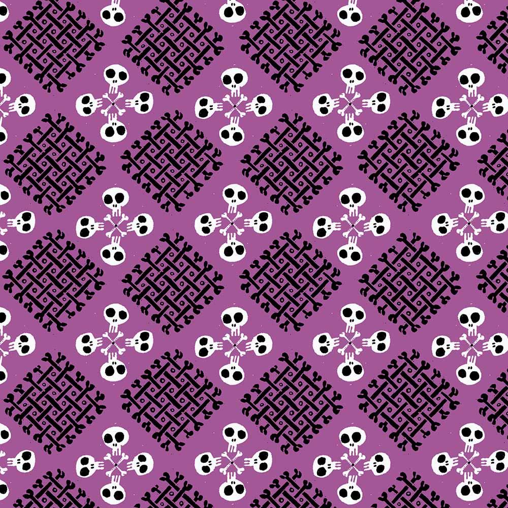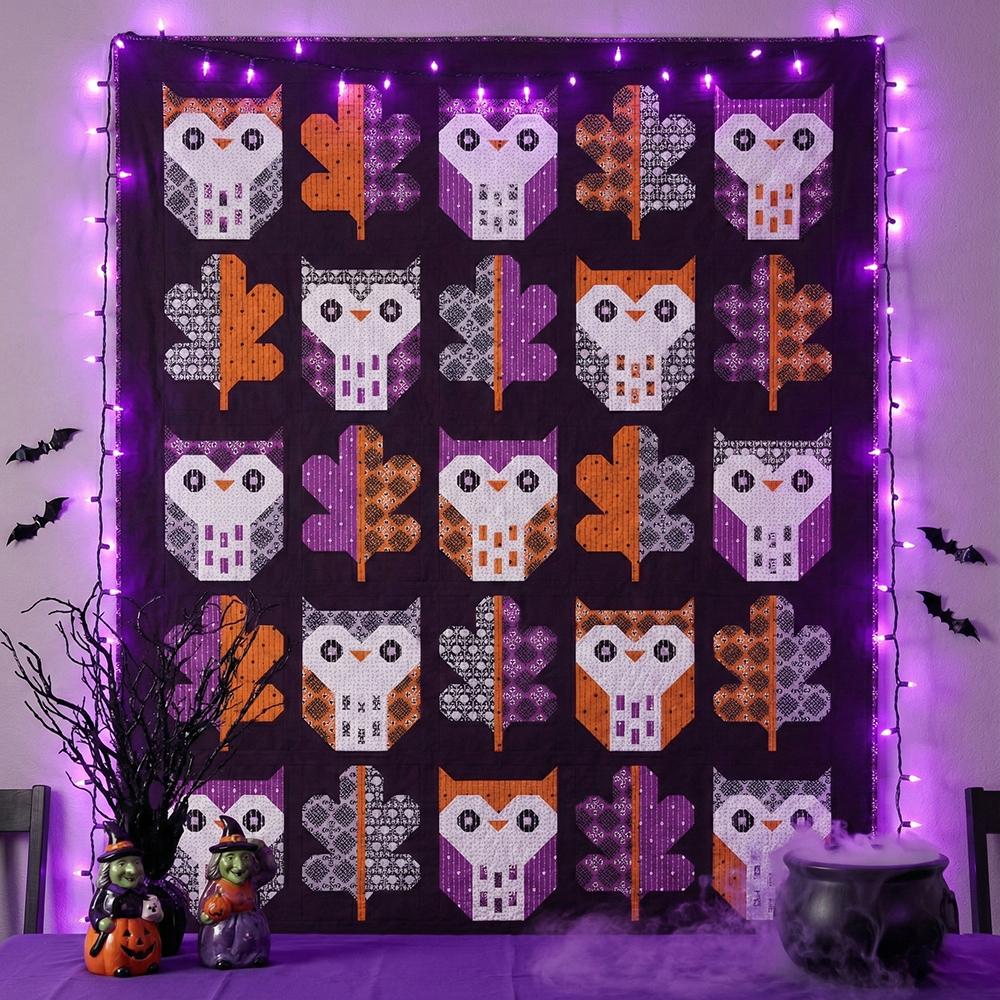 The fabric collection featured blends gothic charm and spirited mischief that hints at Halloween but lingers beyond it. Prints include dancing skeletons, ornate skulls and shadowy motifs. The Night Owl Kit includes pattern by Pen + Paper Patterns and all the fabrics needed for the top and binding of the 51" x 62" thow-size quilt from the Dem Bones collection by Sarah Watson for Cloud9 Fabrics. Backing available separately, 4 yards x 44" wide recommended.