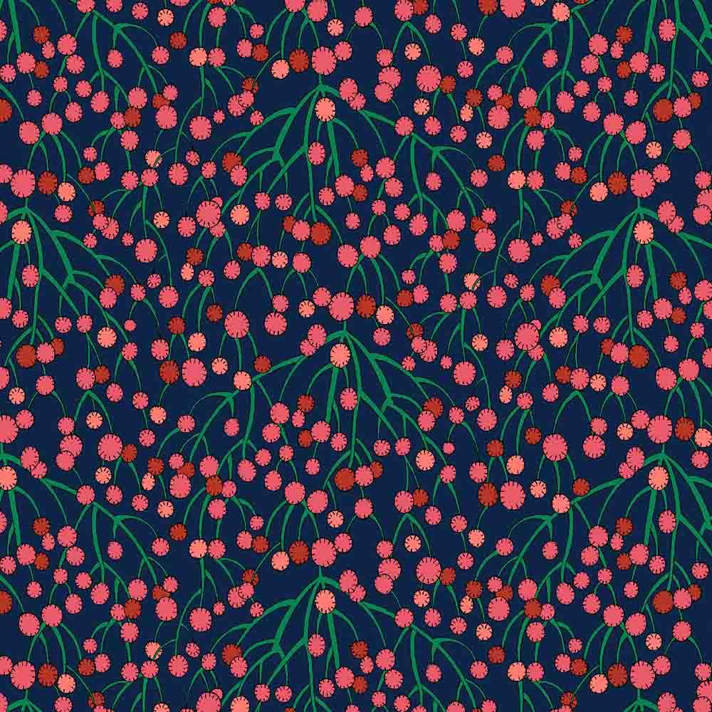 The Rabbit Hole Quick Kit includes pattern designed by Victoria Parret, and all fabrics needed to complete the top and binding of a 48" x 65" quilt. Backing is available separately, 3 yards x 44" recommended.