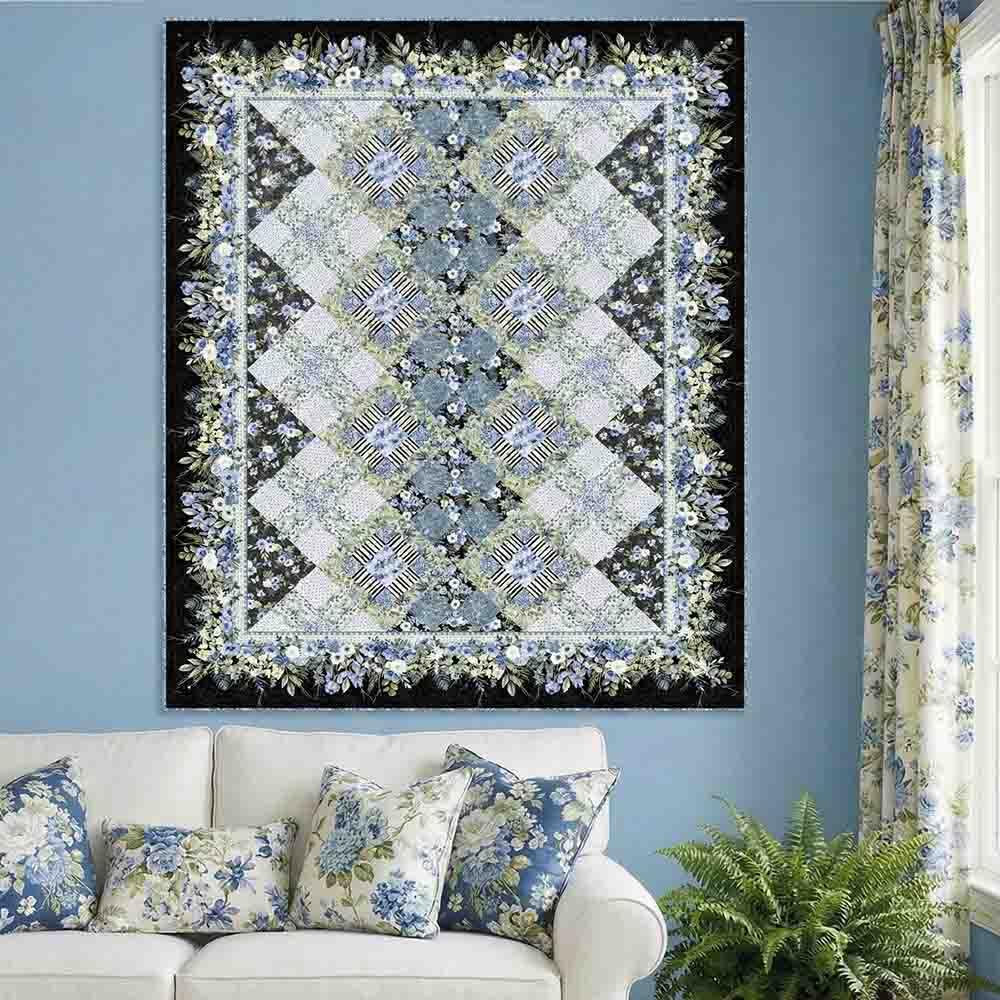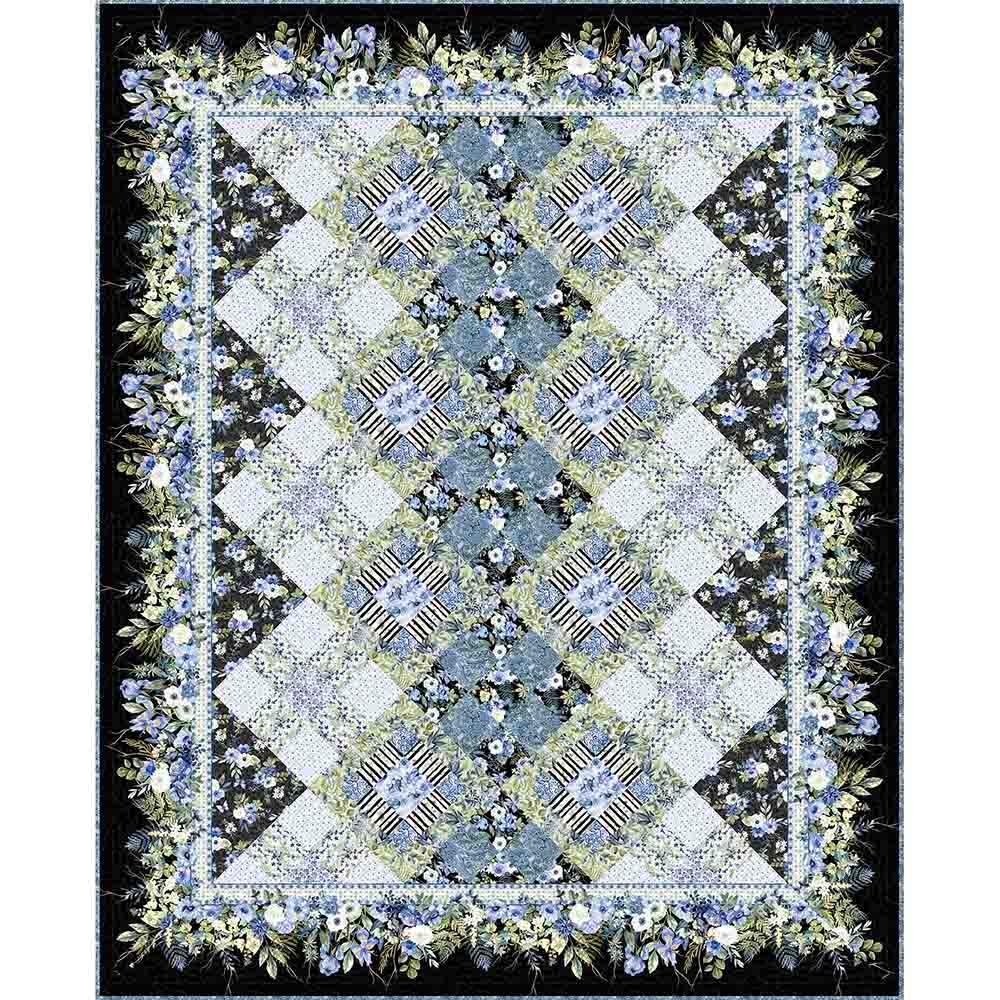 The Sanctuary Quilt Kit includes pattern and all fabrics needed to complete the front and binding of a 70" x 87" quilt. Backing is available separately, 6 yards x 44" wide is recommended.