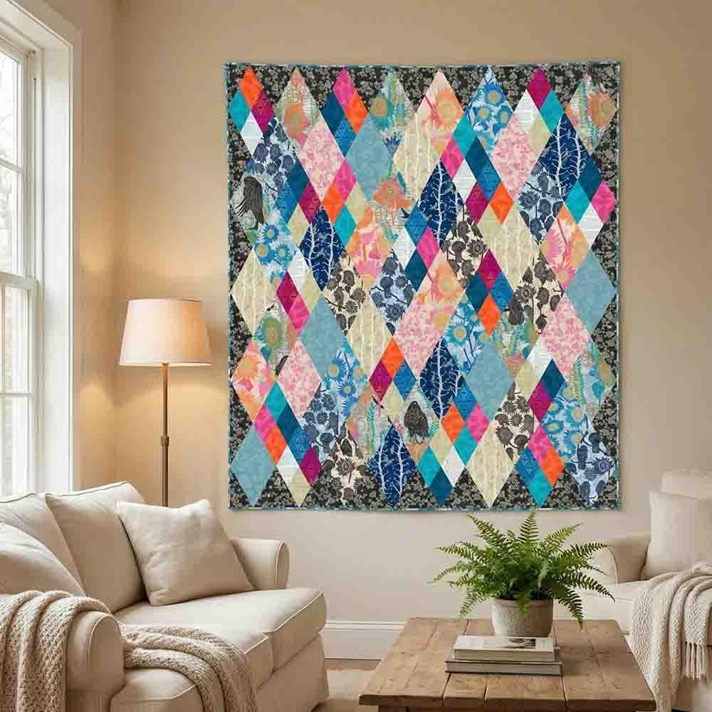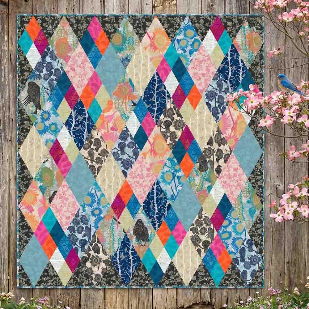 The Shine Quilt Kit includes pattern by Valori Wells and all the fabrics needed to complete the front and binding of a 64" x 70" quilt. Backing is available separately, 4-1/2 yards x 44" wide recommended.