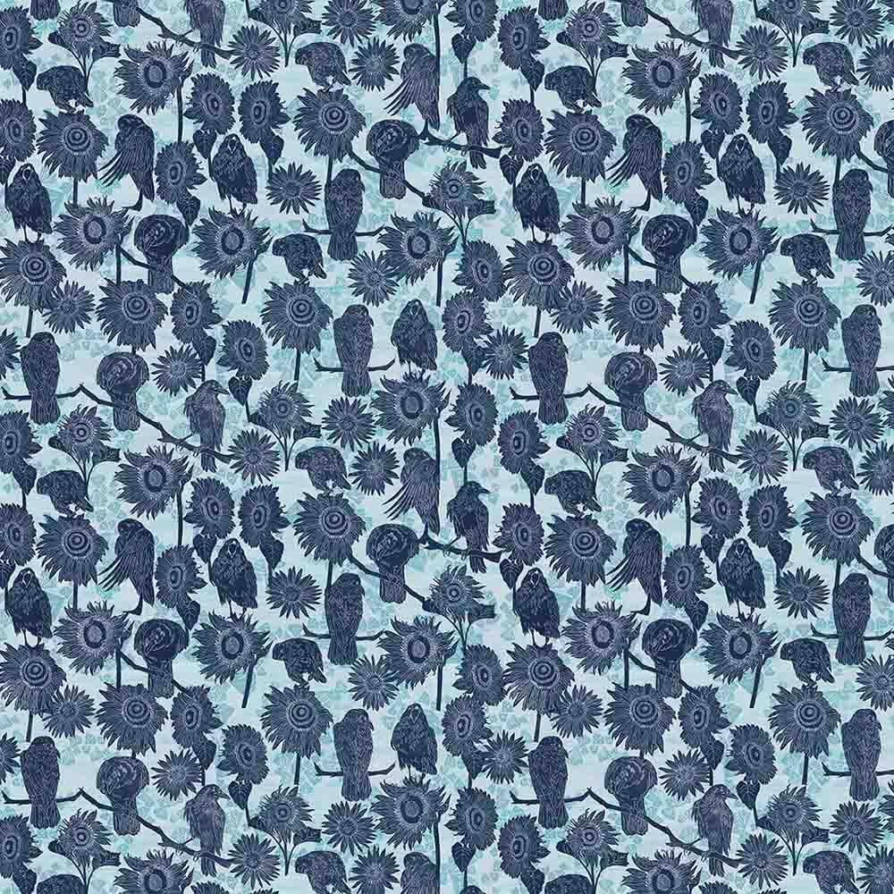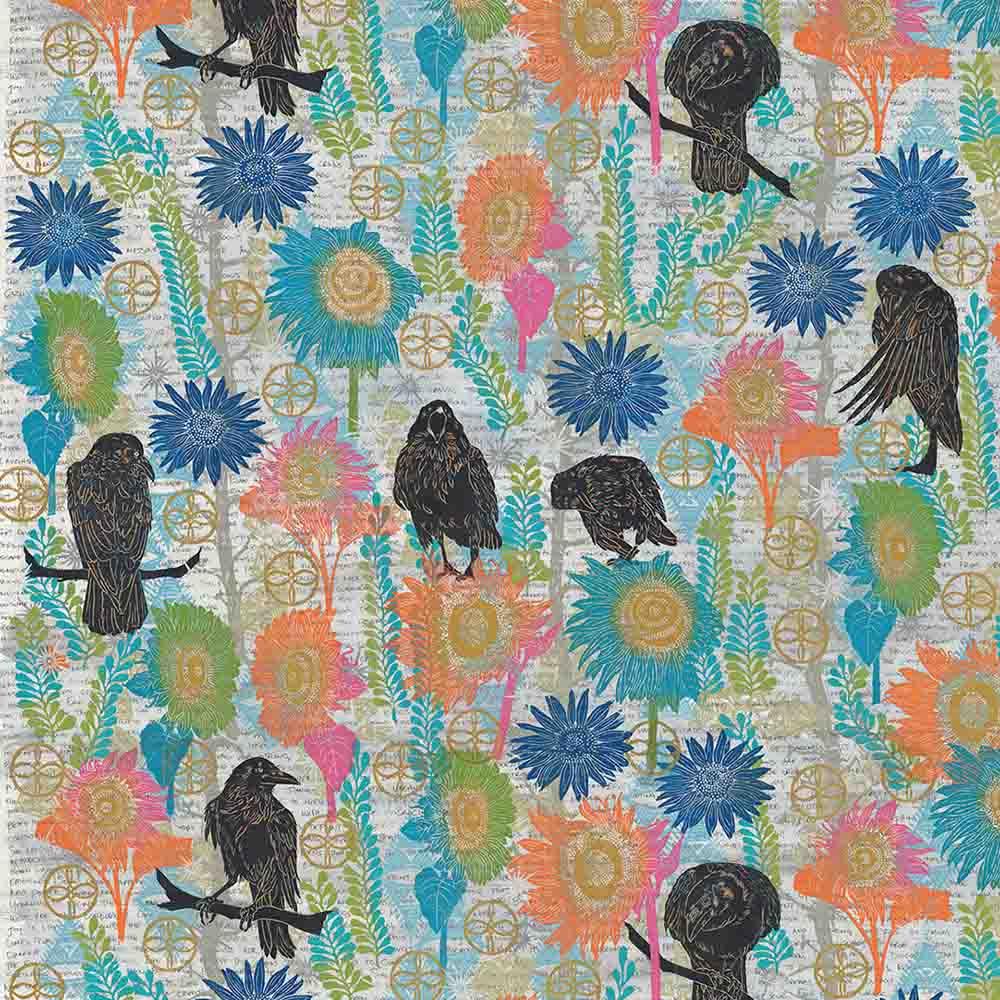 The Wisdom fabric collection emerged from months spent in the solitude of my studio, painting larger-than-life crows. Those were nights illuminated by moonlight, filled with music, movement, tears, and brushstrokes - a journey of raw creativity and self-discovery, free from the weight of outside opinions. In the stillness, away from the world's noise, I found a sacred space for inner peace and reflection. Through moments of grief and sadness, softened by the rhythm of the paint. Yet within this experience, there was also hope and joy - a quiet light that grew stronger with every stroke. It was in this process that I found a renewed love for myself and a deep sense of belonging within my own being, making this collection a testament to the beauty of solitude and the resilience of the human spirit. - Valori Wells