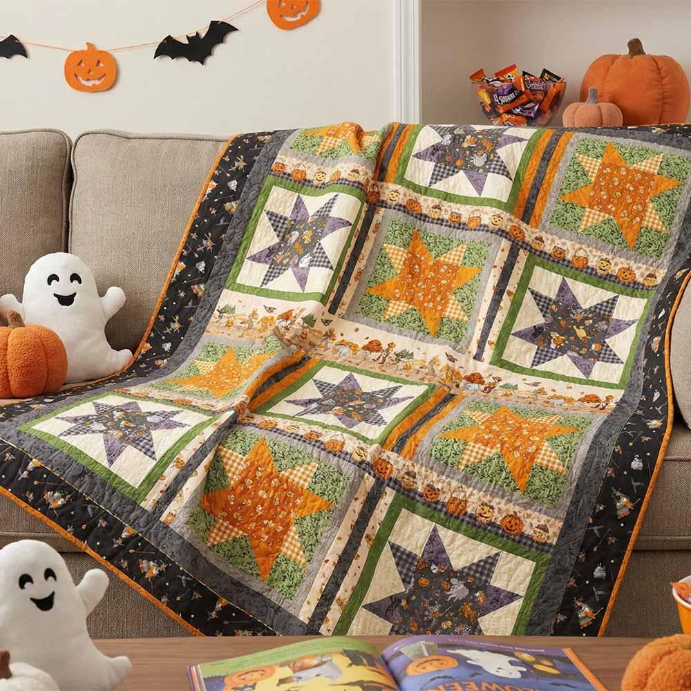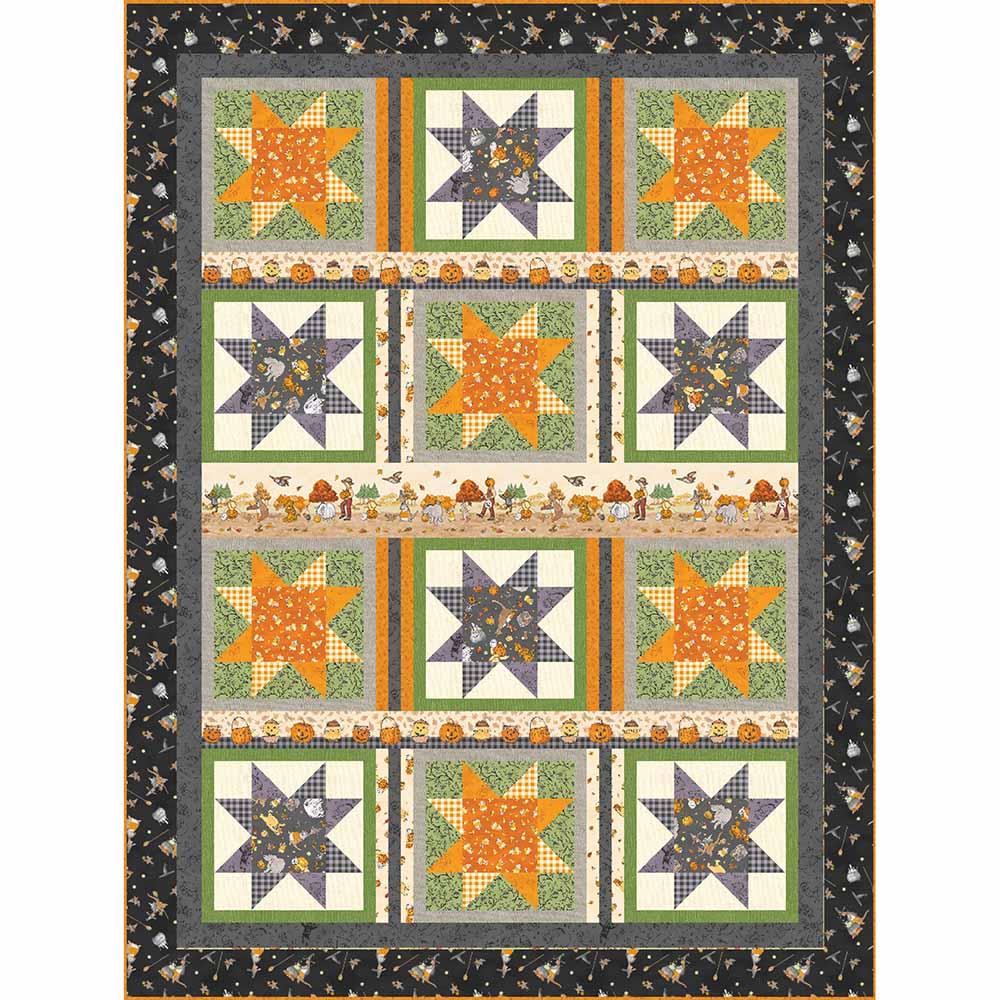 The Trick or Treat Quilt Kit includes pattern by Matthew Pridemore and all fabric needed to complete a 60" x 80" quilt. Backing is available separately, 5 yards x 44" recommended.