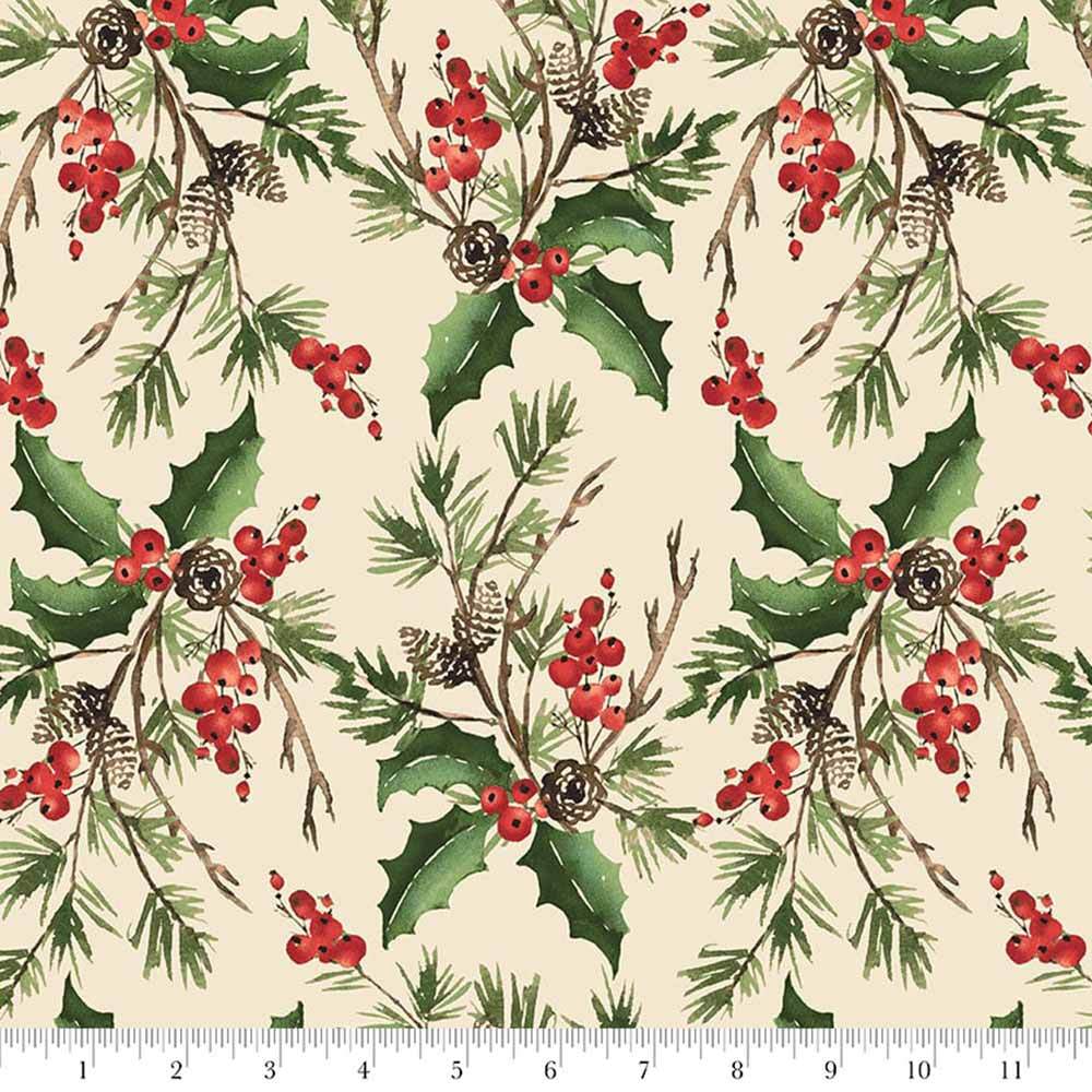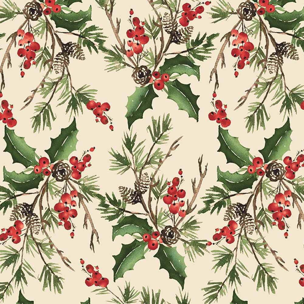 Henry Glass & Co. - Berry Chic - A Digitally Printed Collection by Pattern Wheel Studio - Holly Bouquet - Cream - 108" Wide 3-Yard Back Pack