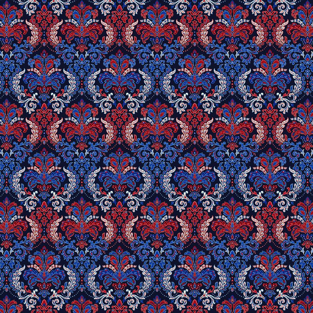 Henry Glass Fabrics - Liberty Hill by Color Principle - Damask - Navy- 108" - 3-Yard Back Pack