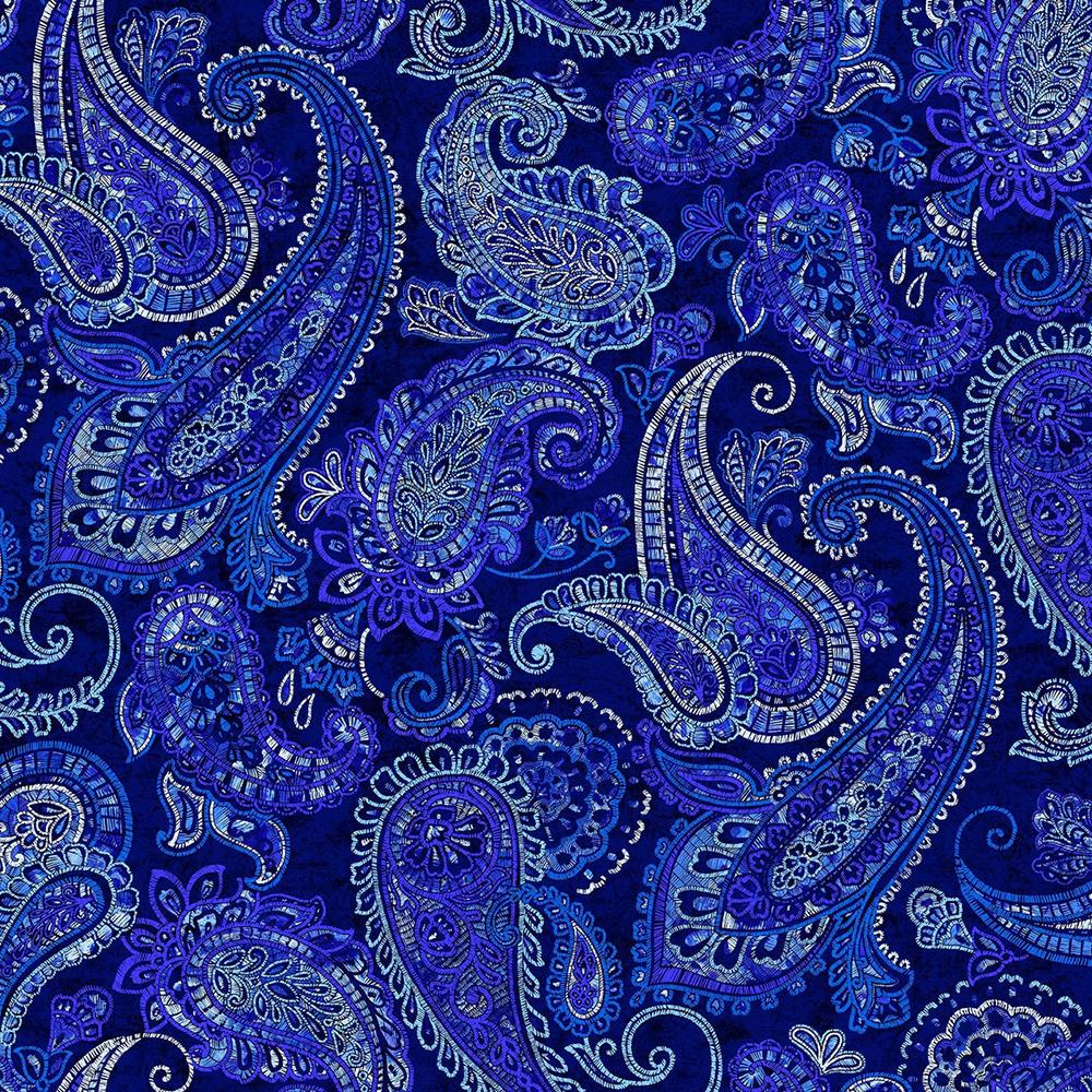 Henry Glass Fabrics - Parkside By Color Principle - Large Embroidered Paisley - Royal - 118" - 3-Yard Back Pack