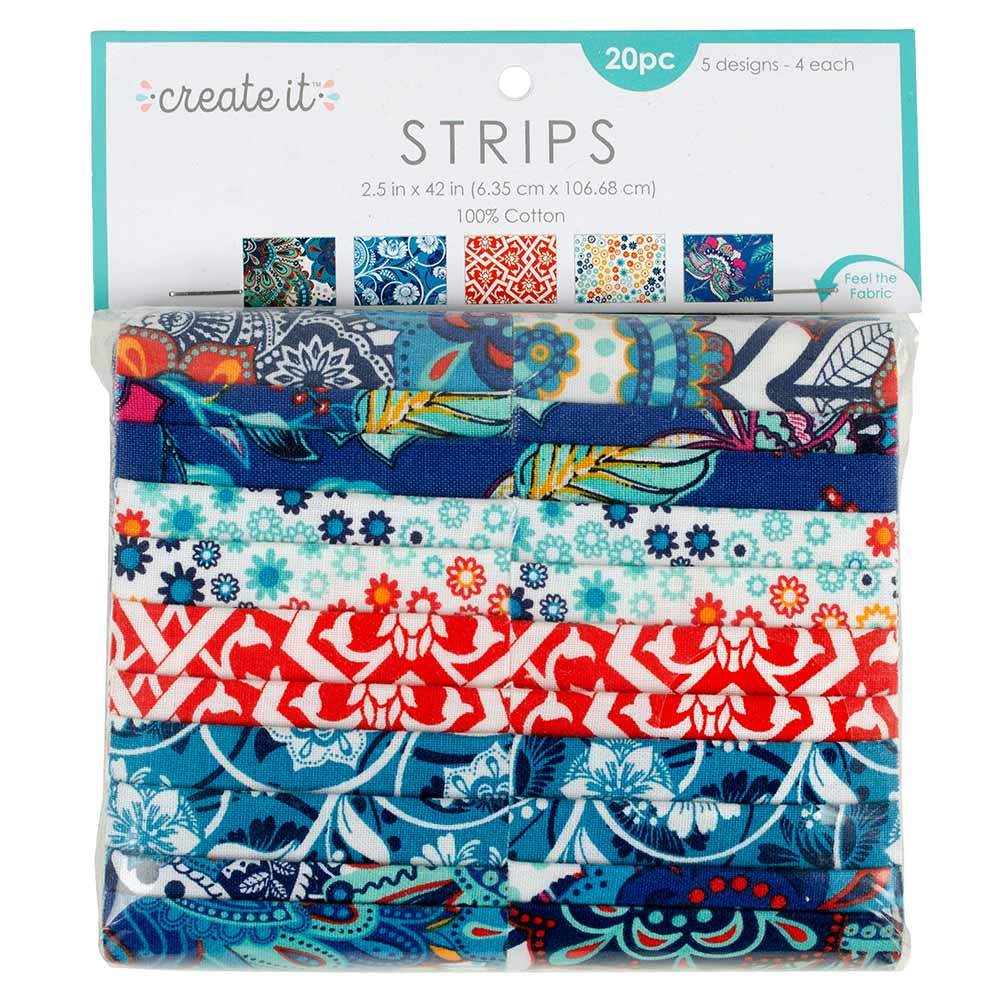 The Moroccan 2.5" x 42" Strips pack includes 5 different prints that are perfectly coordinated. Pack includes 20 pieces total.