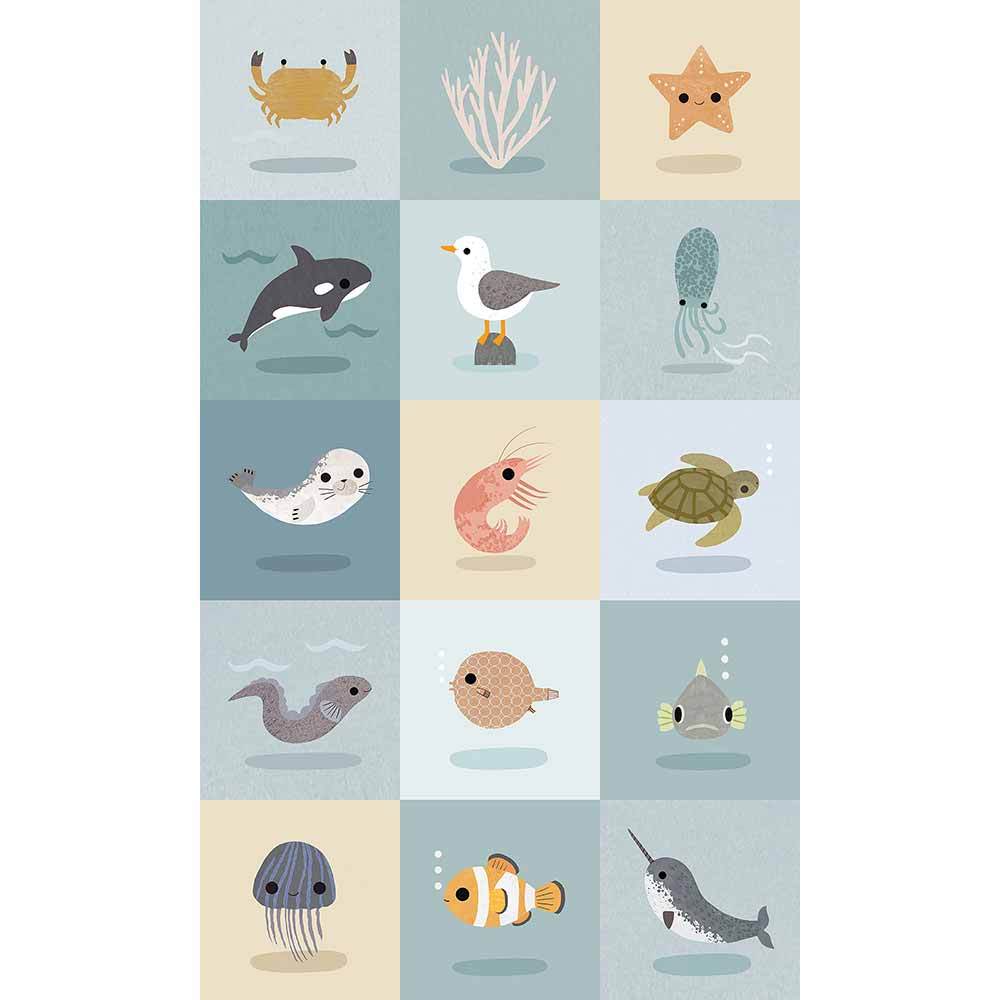 The 24" x 44" panel is from the whimsical and coastal-inspired Beyond the Sea collection by Paint Love Studio for Dear Stella.