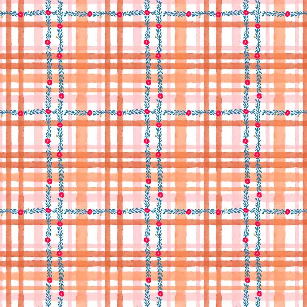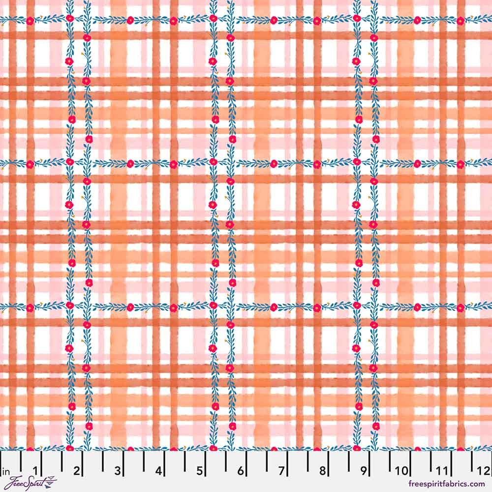 The Daisy Check print in Orange is from the Pompadours collection designed by Carolyn Gavin for FreeSpirit Fabrics.