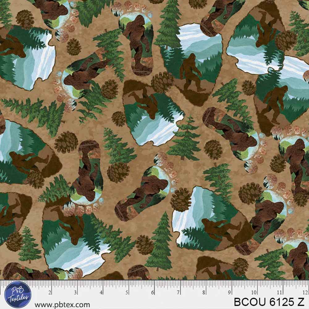 P&B Textiles - Bigfoot Country by Lauren Rader - Bigfoot & Arrowheads - Brown - Yardage