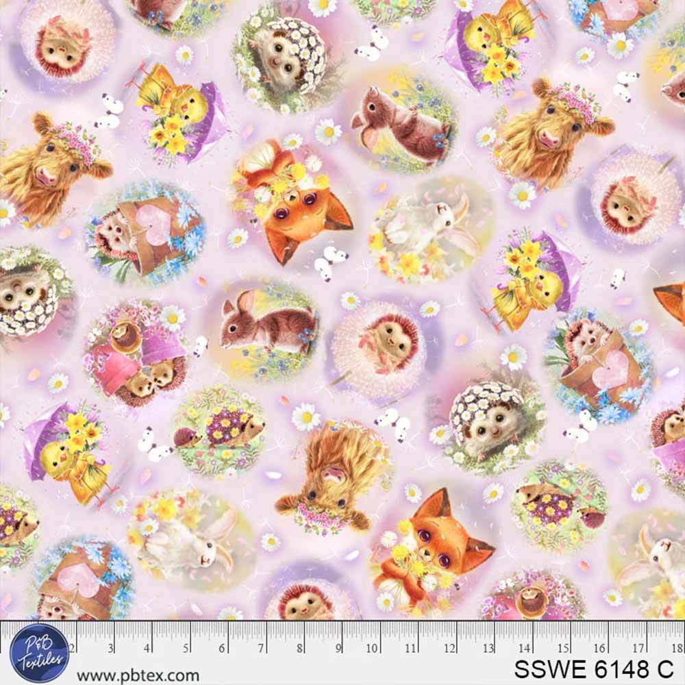 The Spring Cuties print is filled with the sweetest baby animals on a pink background. Designed by Pip Wilson from the Spring Sweeties collection for P&B Textiles.