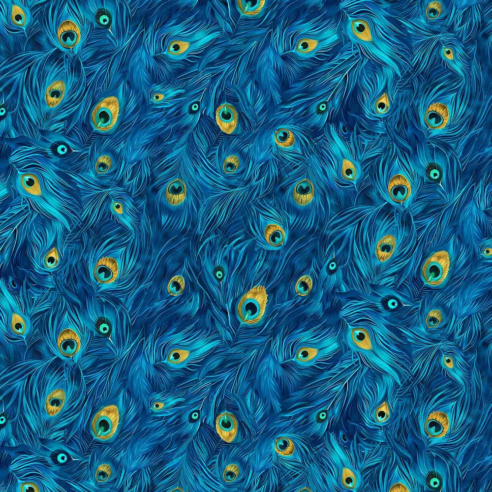 Timeless Treasures - Wild Beauty - Packed Feathers - Royal - Yardage