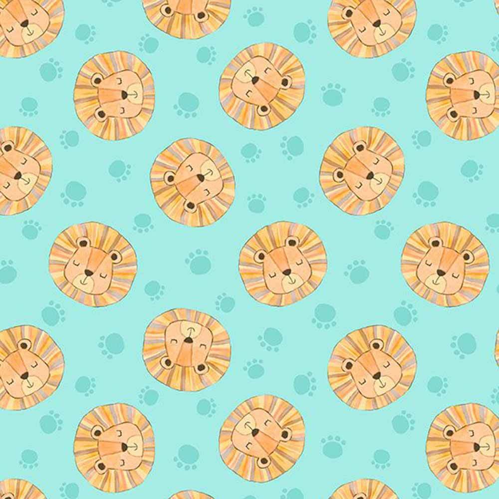 Wilmington Prints - Safari Snuggles by Jenny Faw - Lion Toss - Teal - Yardage