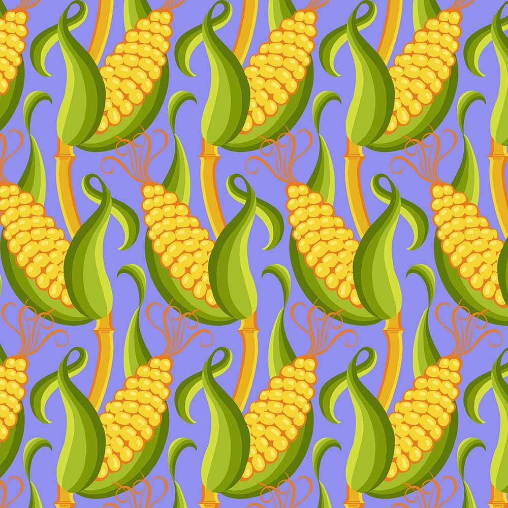 FreeSpirit Fabrics - Vegetable Patch by Jane Sassaman - Corn - Blue - Yardage