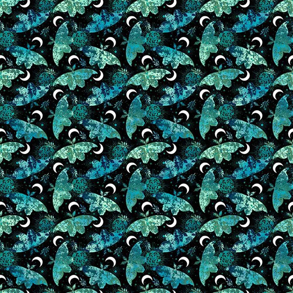 In the Beginning - La Luna by Jason Yenter - Moths & Moons - Teal - Yardage