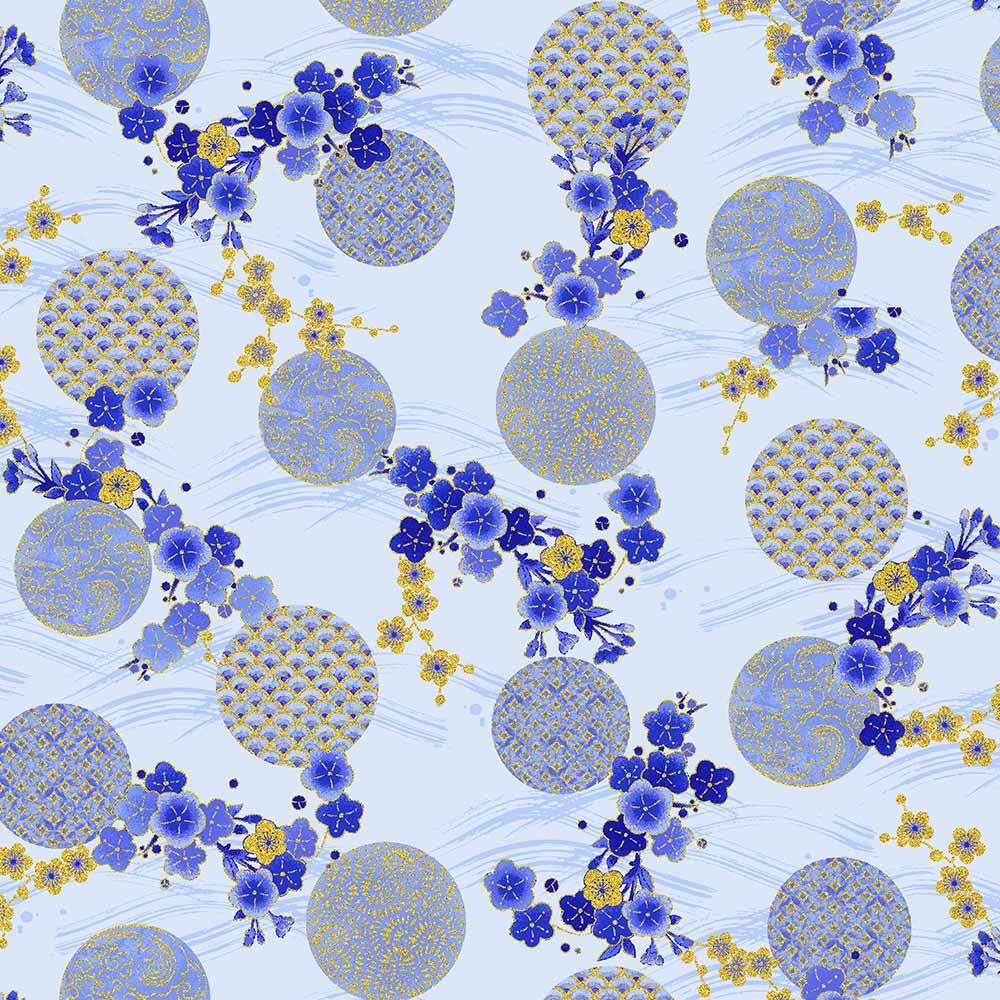 Timeless Treasures - Moonlight by Chong-A Hwang - Asian Blossom Geo Metallic - Dove - Yardage