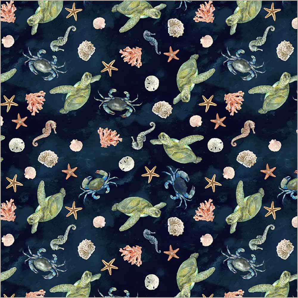 Windham Fabrics - Deep Blue by Katherine Quinn - Digital - Creatures Of The Sea - Deep Blue - Yardage