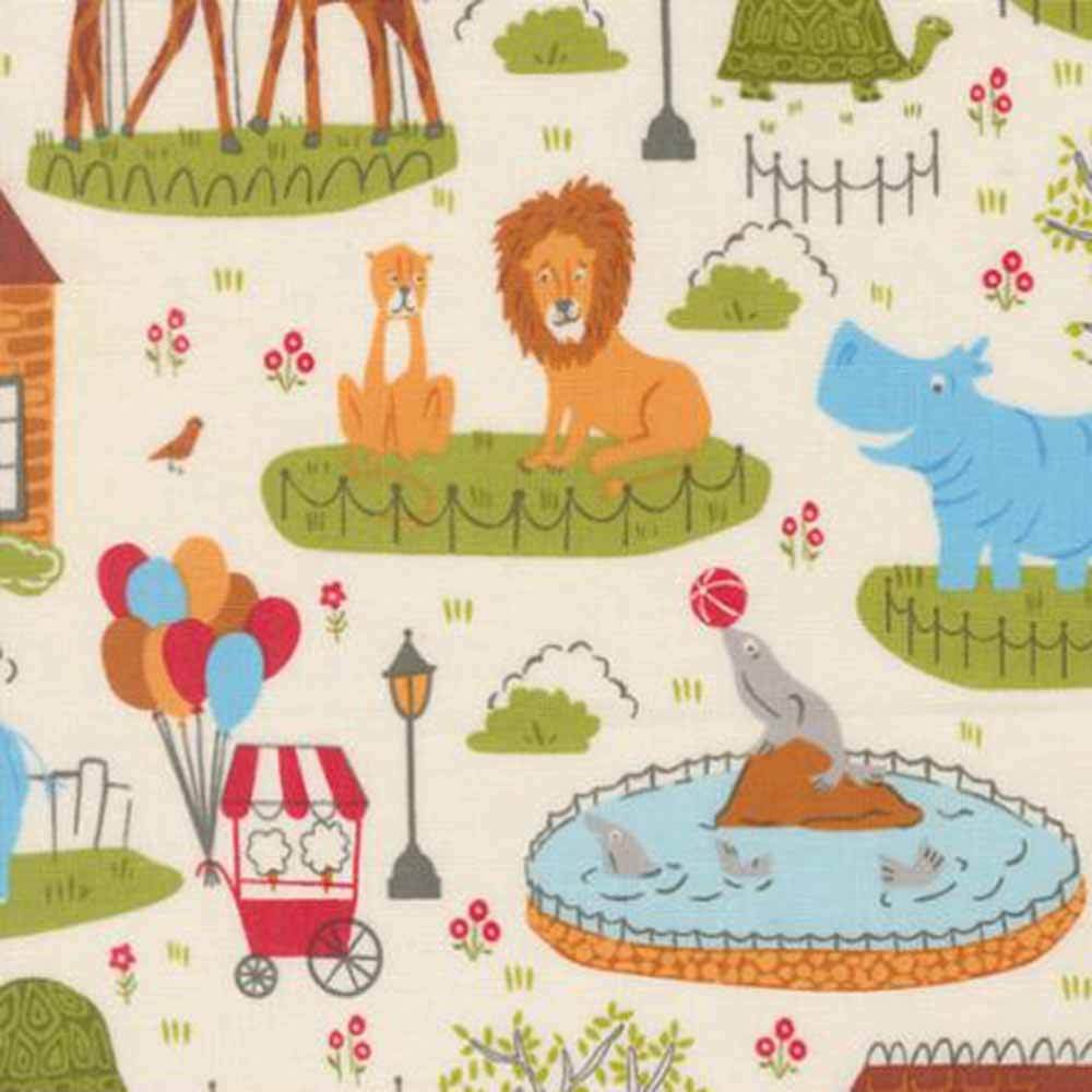Moda Fabrics - Animal Park Fun by Stacy Iest Hsu - Scenic Novelty Zoo Animals - Multi - Yardage