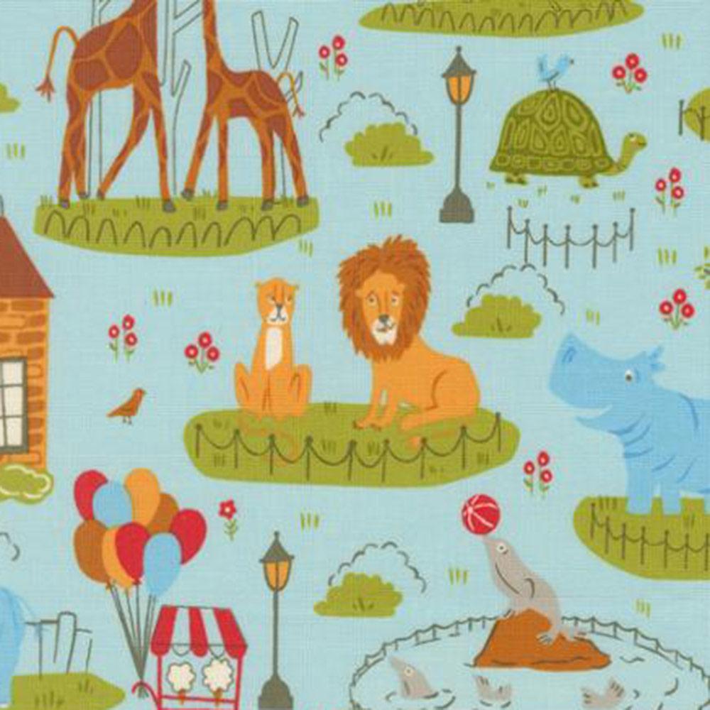 Moda Fabrics - Animal Park Fun by Stacy Iest Hsu - Scenic Novelty Zoo Animals - Blue - Yardage