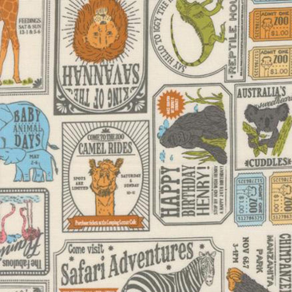 Moda Fabrics - Animal Park Fun by Stacy Iest Hsu - Vintage Zoo Words News Paper Animals - Multi - Yardage