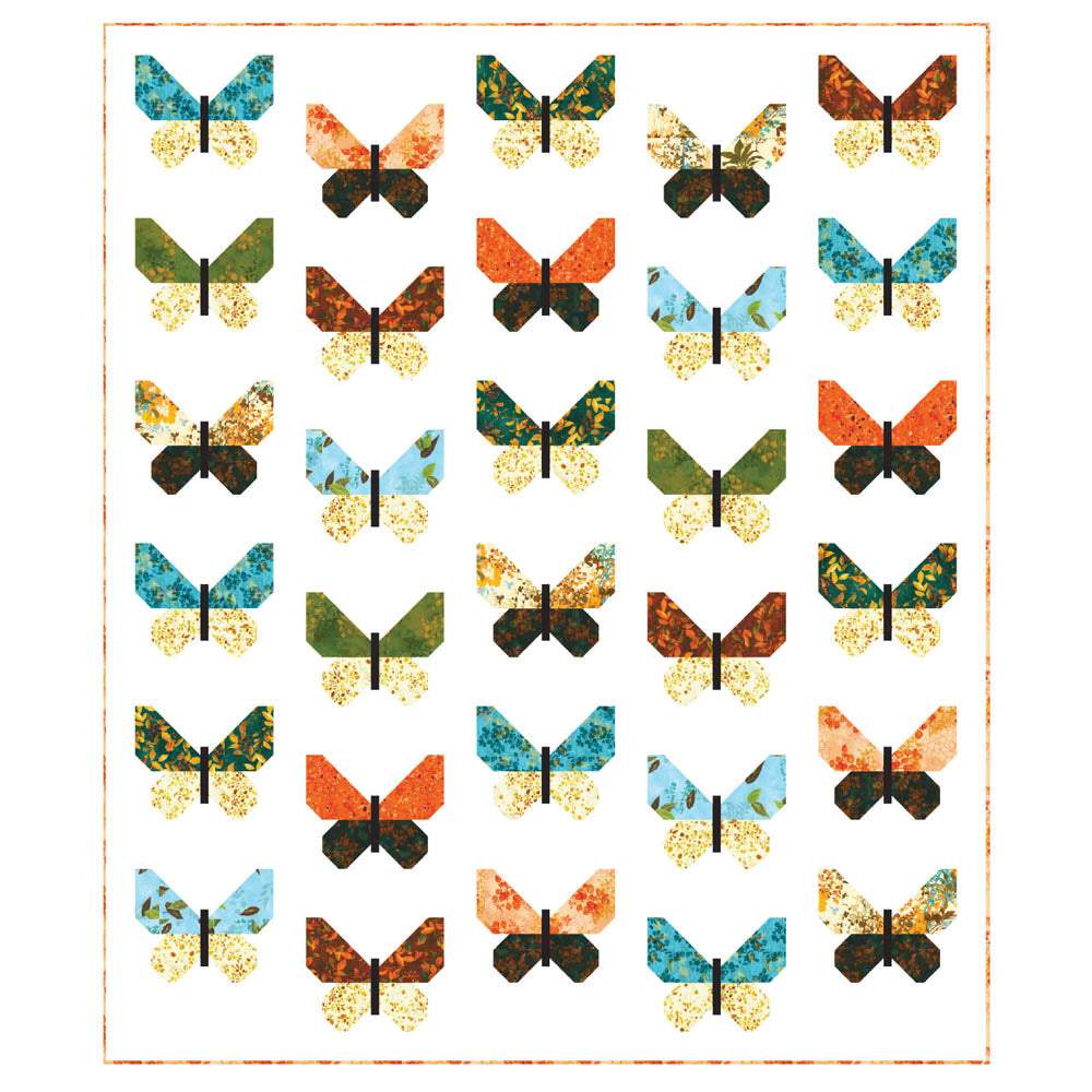 From Ariga Wilson, this beginner level quilt pattern features a repeating butterfly block for a finished size of 54" x 64".