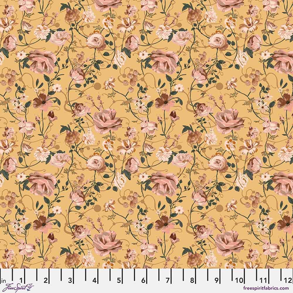 For years, the lyrics from Gordon Lightfoot's "If You Could Read My Mind" have danced in my head. The verse where he sings about a paperback novel from a drugstore has always called to mind a vivid tale of a tragic love story. A decrepit gothic castle overlooking a wave battered cliffside; candles barely illuminating threadbare, velvet covered furniture; dark corners of peeling wallpaper enlaced with years of mangled, drooping cobwebs. In the walls of this crumbling manor, a love story unfolds. Enrapture, my first collection for FreeSpirit, sets the stage for this romance. Inspired by bodice ripper paperback novels, the lilting florals and alluring geometrics of this collection tell a story of love won. And perhaps love lost...Giucy Giuce