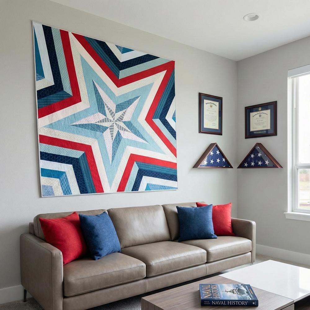 This project truly radiates! Star Storm features the Primitive Cloth collection by Sew Kind of Wonderful, which features this moody assortment of blues, creams, grays, and one stunning red feature fabric that's inspired by the timeless symbols of patriotism, perfect for honoring national pride in every stitch. With classic elements of stars, stripes, anchors, flowers, and even a horse and buggy, this collection evokes love for the country. Kit includes pattern designed by Victoria Findlay Wolfe that includes large-scale re-useable paper pattern templates for precise piecing and all the fabrics needed for the top and binding. Finished size is 80" x 80". Backing is available separately, 5 yards x 44" wide is recommended.