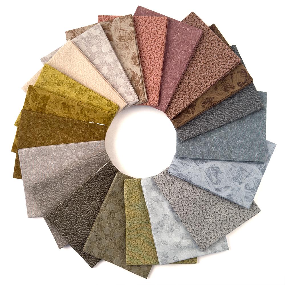 A nature‑inspired blender collection featuring rich, organic tones and subtle texture that will give you a calm, spa-like color palette. Perfect for grounding quilts, enhancing backgrounds, and coordinating beautifully with earthy or outdoor‑themed prints. The Woodland Fat Quarters collection includes 20 pieces at 18" x 21.