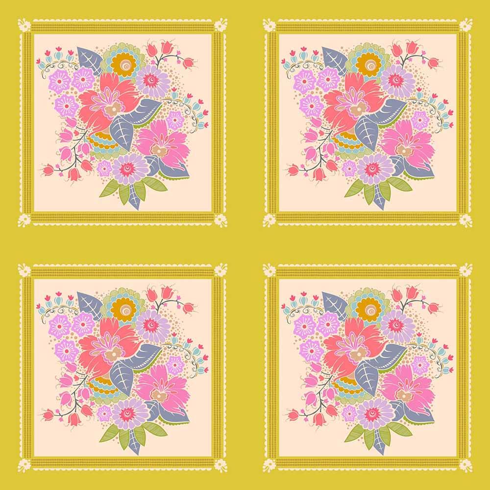 Northcott Fabrics - Floral Square Dance Block Panel 36" x 44" - Yellow