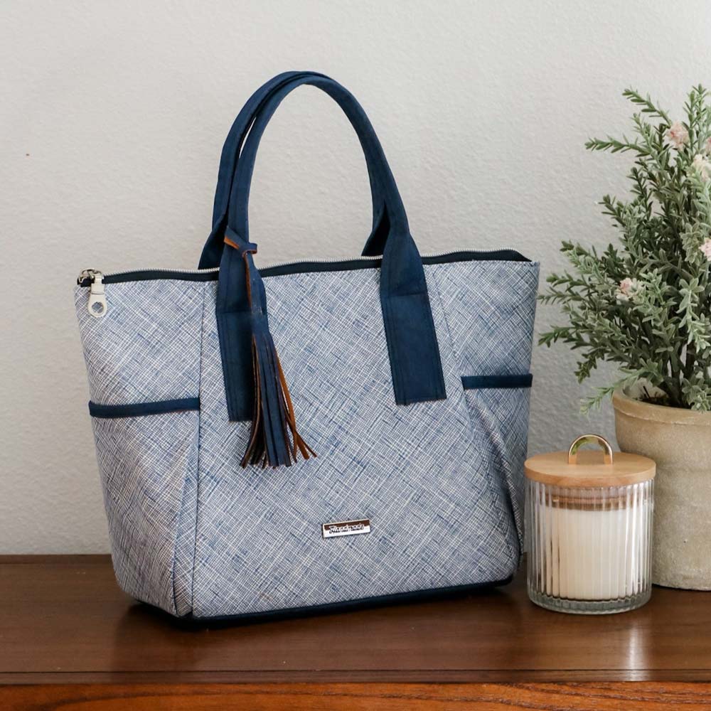 Whether your customers are just starting their sewing journey, or are seasoned bag makers, our Making Bags Book Club is a great way to build their confidence in bag making. During this six-part club series, they'll learn the foundational knowledge of bag making, explore new materials, techniques, and make 5 skill-building projects. By now, hopefully, your customers feel prepared to tackle a more challenging style of bag and put their knowledge to the test. This handbag has been designed to make a sophisticated statement every day. The convenient side pockets give easy access to small essentials, and the roomy interior secured with a zipper closure provides space for larger items.