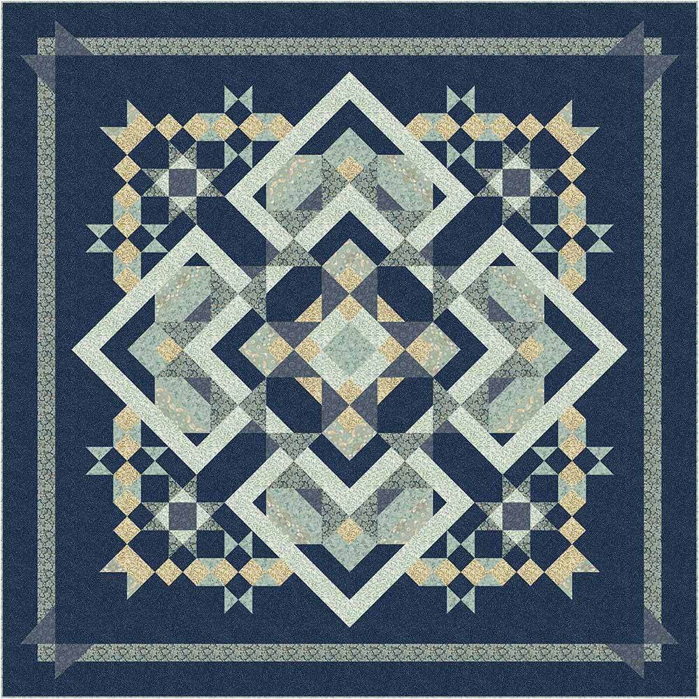 From our customer's requests - this popular project is now in KING size! A block of the month project for all skill levels! The pieced blocks are made from squares and rectangles with no y-seams or difficult piecing. The Evermore Dark Version showcases intricate and stunning fabrics, in navy along with pops of softer shades of tan and aqua, from the Original Morris & Co. for FreeSpirit Fabrics. Each month for 11 months you'll receive the pattern and all the fabrics needed for that section of the quilt. Finished size is 106" x 106". In case of any miscuts along the way, we offer separately a 7-piece fat quarter bundle to match back perfectly. Backing is also available separately, 10-1/2 yards x 44" wide or 3-1/2 yards x 108" wide is recommended.