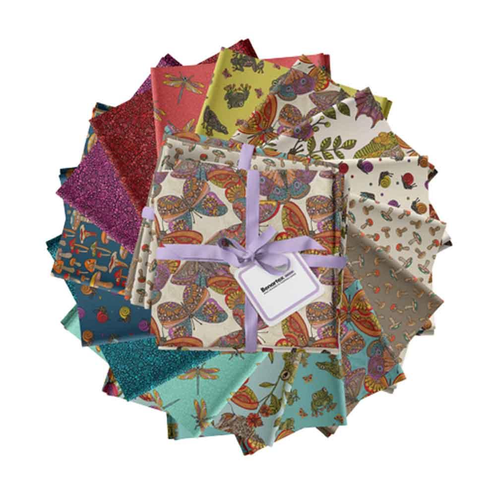 Wander through this imaginative forest with artist Valentina Harper. These fabrics highlight the exquisite beauty of many “Small Wonders” found in nature. She adds whimsical and intricate details within each small wonder. Prints include mushrooms, butterflies, frogs, dragonflies, snails and coordinating mosaic designs. The rich saturated colors are right on trend too!