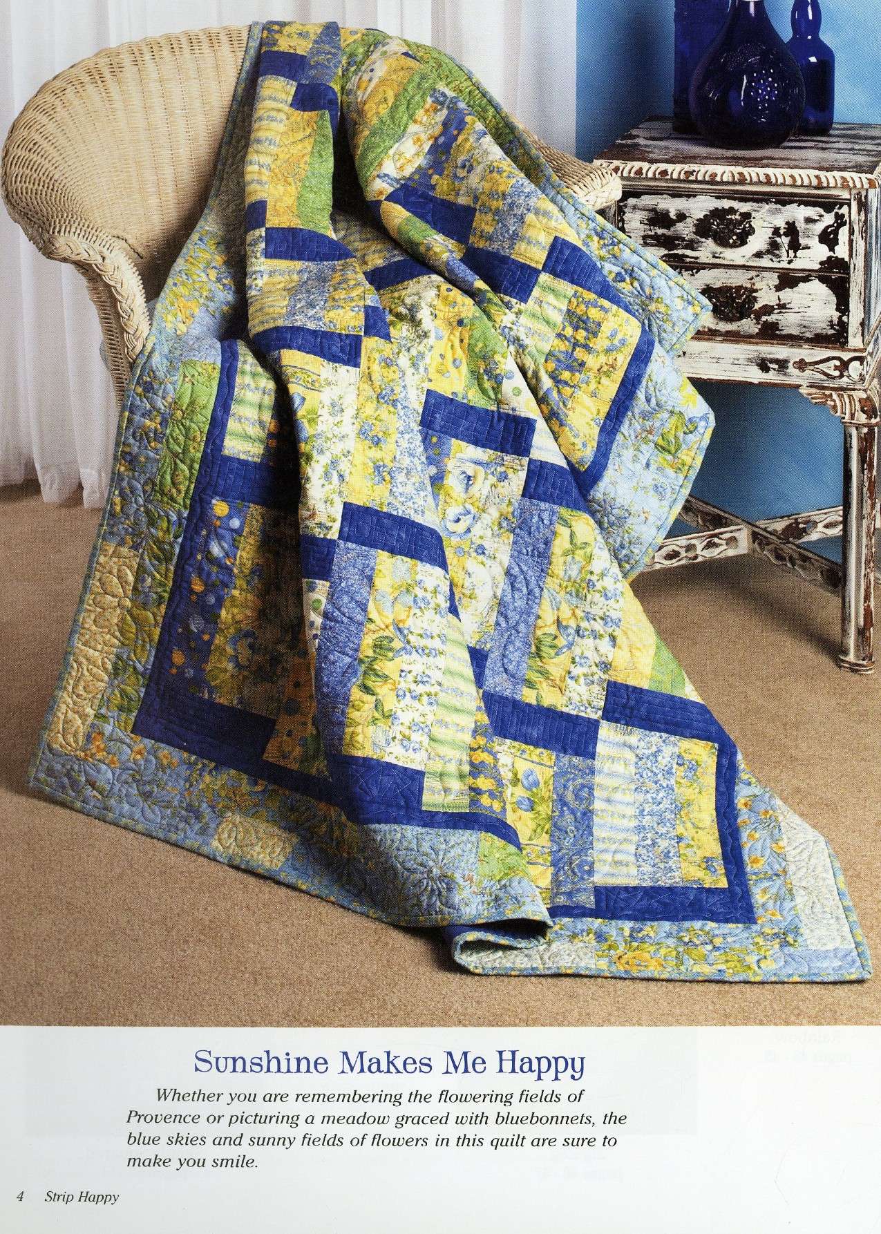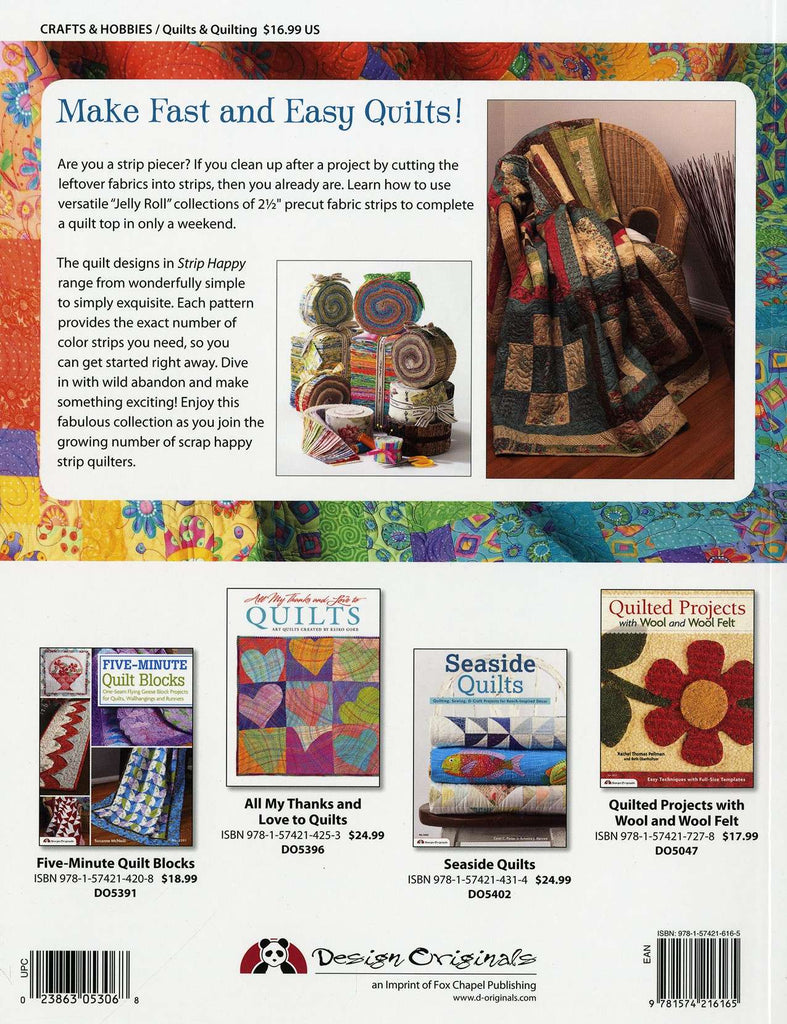 The quilt designs in Strip Happy range from wonderfully simple to simply exquisite. Each pattern provides the exact number of color strips you need, so you can get started right away. Dive in with wild abandon and make something exciting! Enjoy this fabulous collection as you join the growing number of scrap happy strip quilters.