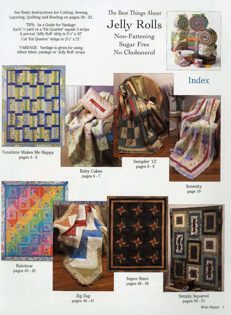 Are you a strip piecer? If you clean up after a project by cutting the leftover fabrics into strips, then you already are. Learn how to use versatile "Jelly Roll" collections of 2-1/2 in precut fabric strips to complete a quilt top in only a weekend.