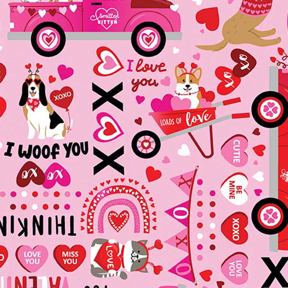 Benartex Fabrics - Love You Fur-Ever By Kanvas Studio - XOXO Words - Pink - Yardage