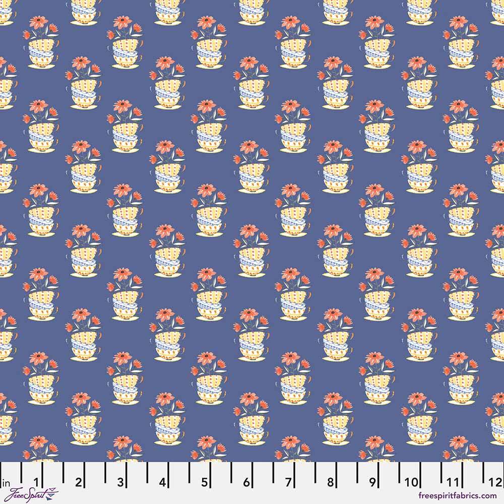 FreeSpirit Fabrics - Blossom Brew By Anne Keenan Higgins - Garden Cups - Denim - Yardage
