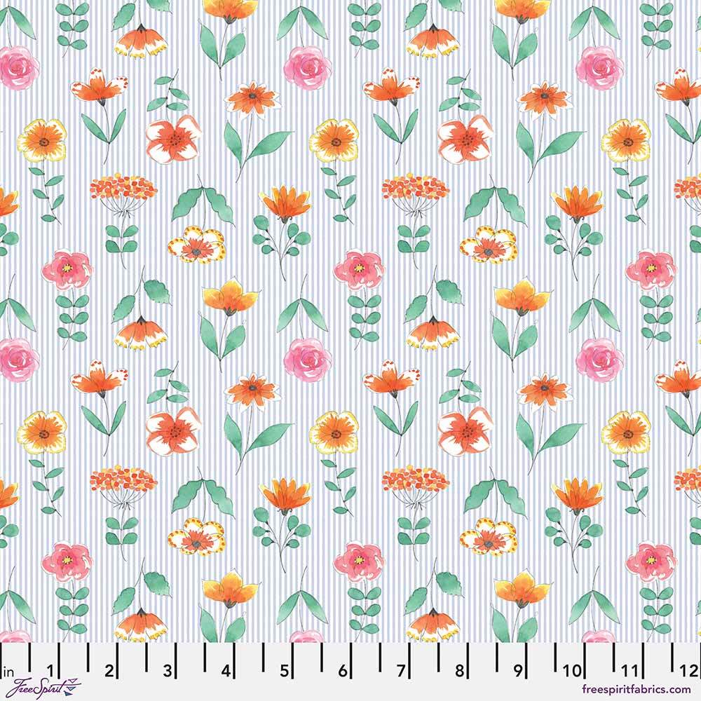 FreeSpirit Fabrics - Blossom Brew By Anne Keenan Higgins - Pin Strip Flower - Multi - Yardage