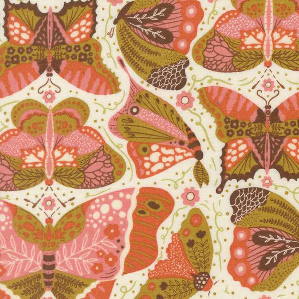 It would be very wise of you to take on this project featuring the Night Owl collection by Gingiber for Moda. Prints include owls perched among birch trees, mushrooms, butterflies and delicate woodland florals that glow under a starlit sky. These hand‑drawn designs and subtle silhouettes bring the peaceful night to life all in a color palette of deep navy, earthy brown, moss green, and misty silver, with accents of peach and clay. The Frankie Quilt Kit includes pattern by Splendid Speck and all the fabrics needed for the top and binding. Finished size is 64" x 77". Backing is available separately, 5 yards x 44" wide is recommended.