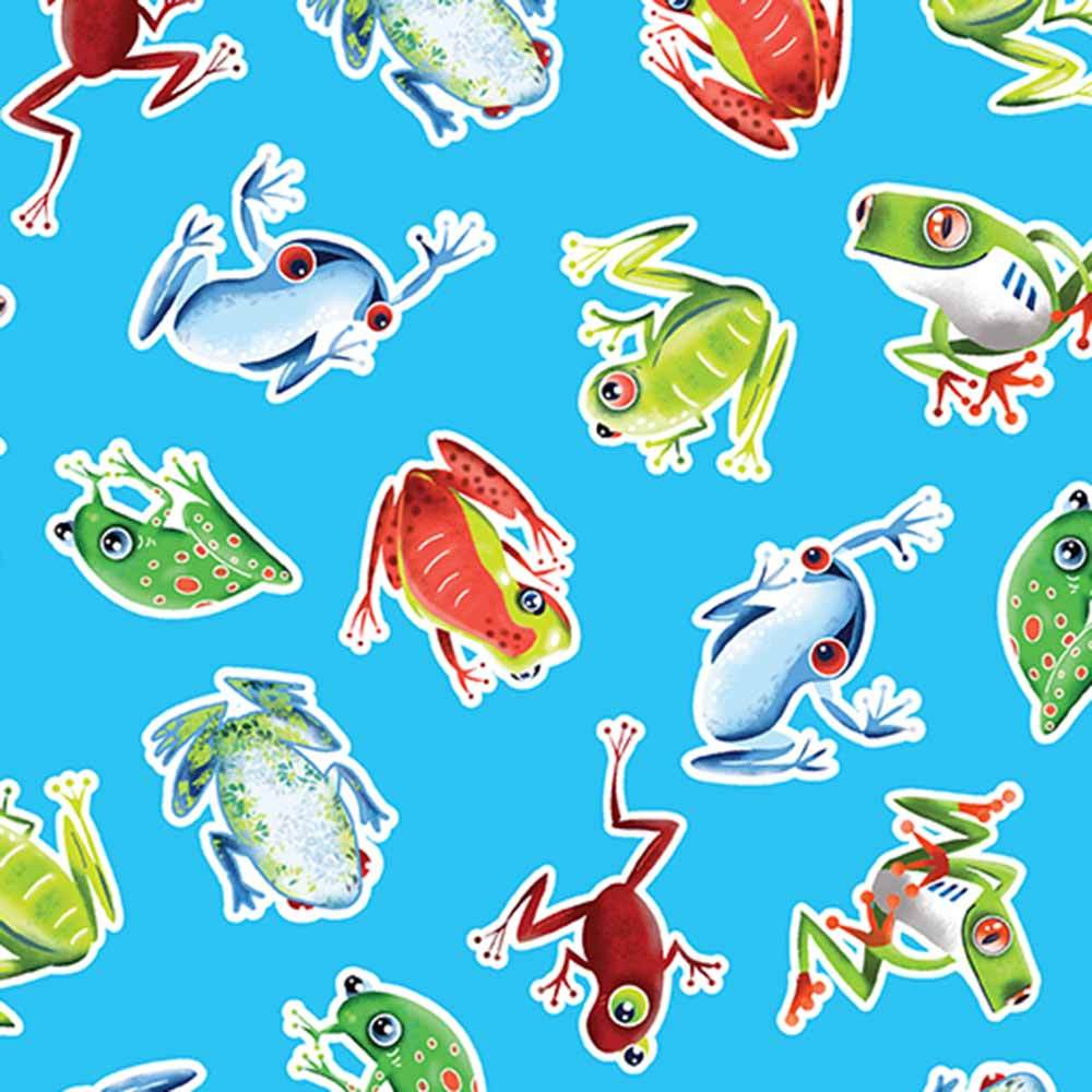 These rainforest frogs are so happy and colorful, they seem to just jump off the fabric! The two panels both feature adorable froggy sayings, and we’ve added a great border stripe and tons of amphibian coordinates too. The colors are vibrant, all the hues of orange and blue and green just pop and hop. To make them even better, we’ve made the entire collection glow in the dark! The Hoppy Days Quilt Kit includes pattern by Stephanie Sheridan and all the fabrics needed to complete the quilt top and binding. Finished size is 56" x 56". Backing available separately, 4 yards x 44" wide recommended.